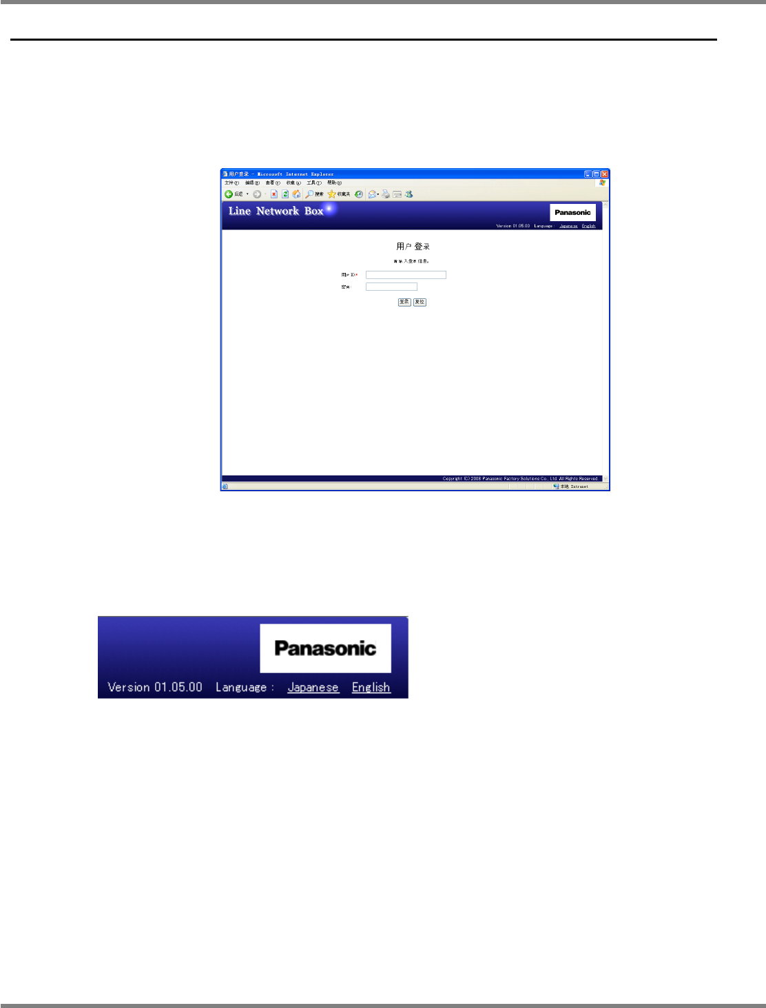 NPM-D LNB 2.4 品质信息数据库的安装 EJM1DC-MB-02L-00 Page 2-11 1 输入用户 ID 和密码,按 [ 登录 ] 。 • 如果所输入的用户 ID 未登录到 LNB , 或 者使用 错误密码进行登录,则发生登录错误 。 ∗ 初期引入时可使用以下用户 ID 进行登录。 用户 ID : administrator 密码 : “” ( 不输入 ) ∗ 显示出主画面 ( 菜单 ) 。菜单的结构根据模式 ( 登录…