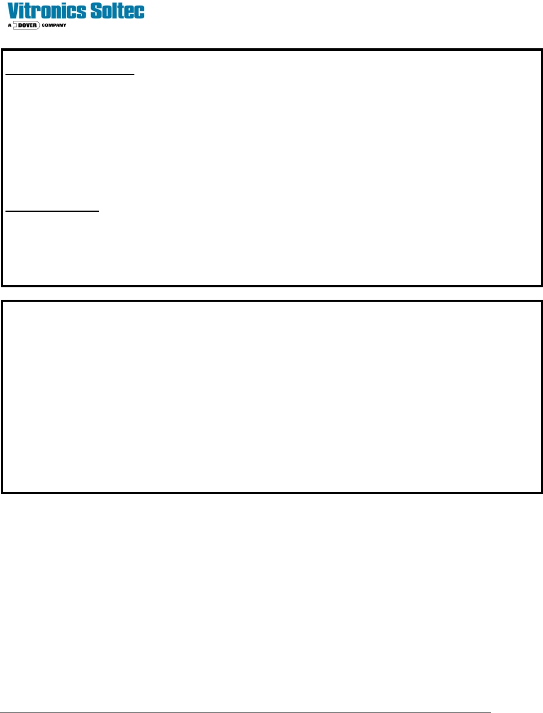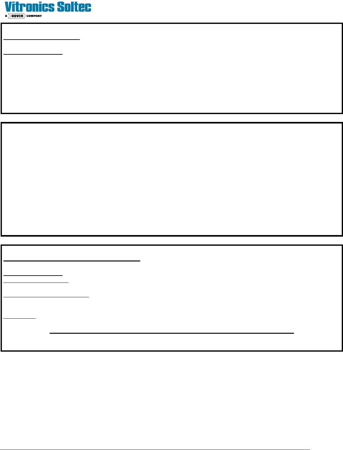 the Vitronics-Soltec Field Service or Applications Support departments for assistance.