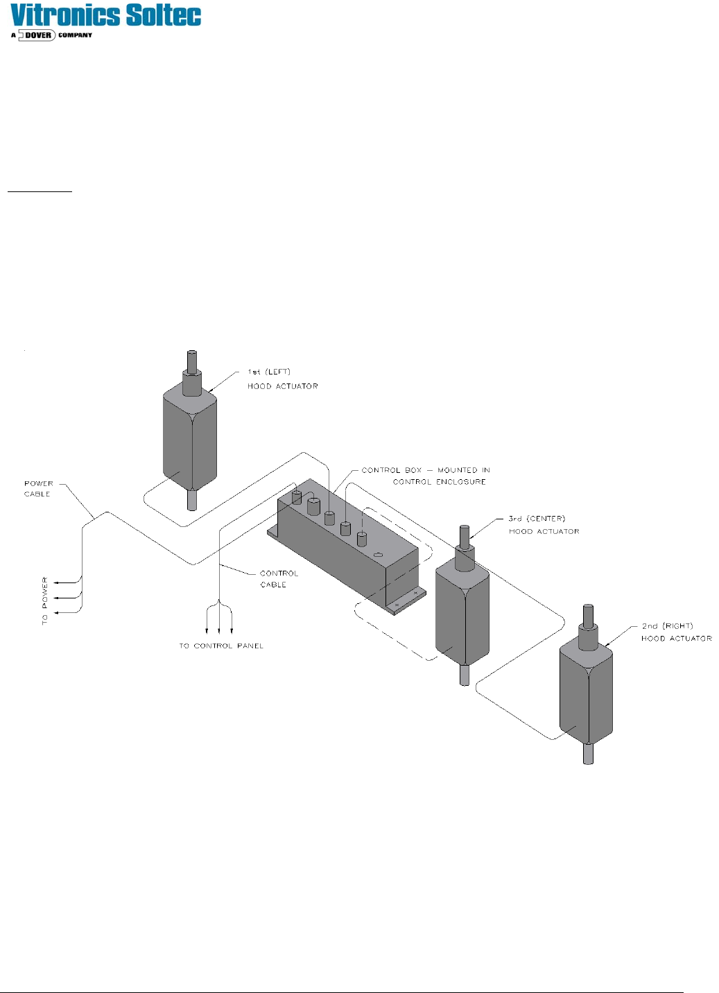 arrangement of the LINAK Actuators is shown here. A UPS option is available to permit opening the Oven Hood in the