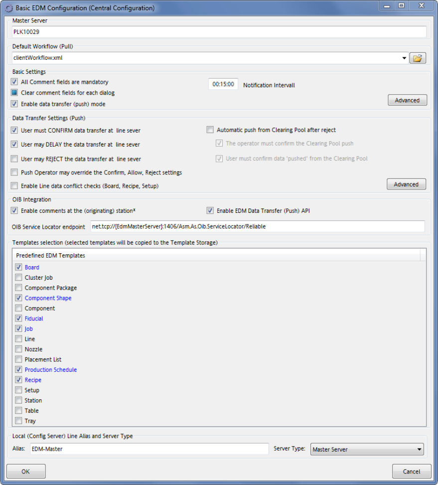Figure 6-1: Basic EDM Configuration dialog