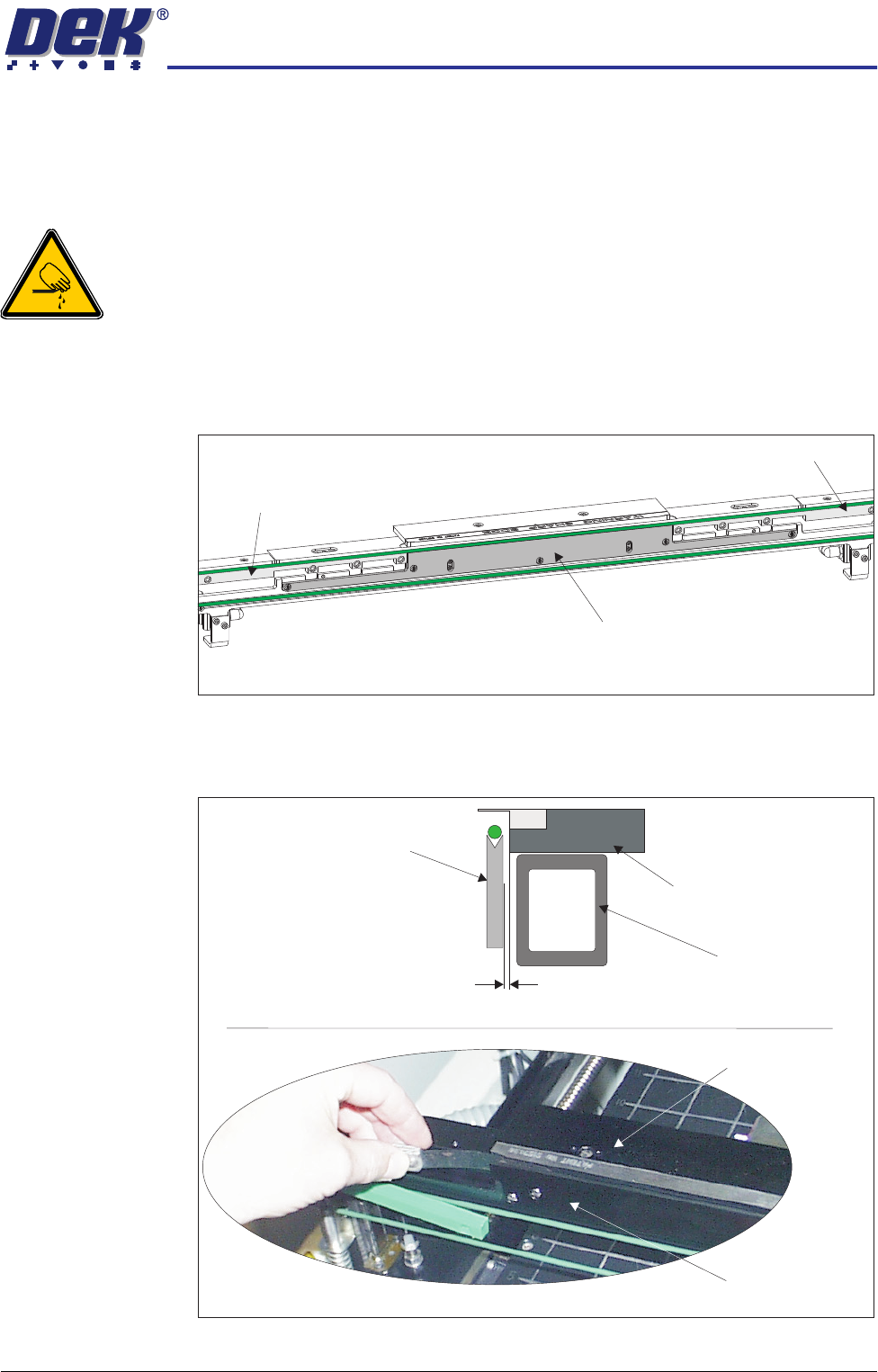 2. Using a pair of rail parallelism H jigs (DEK Pt No 158109) fit the jigs to the