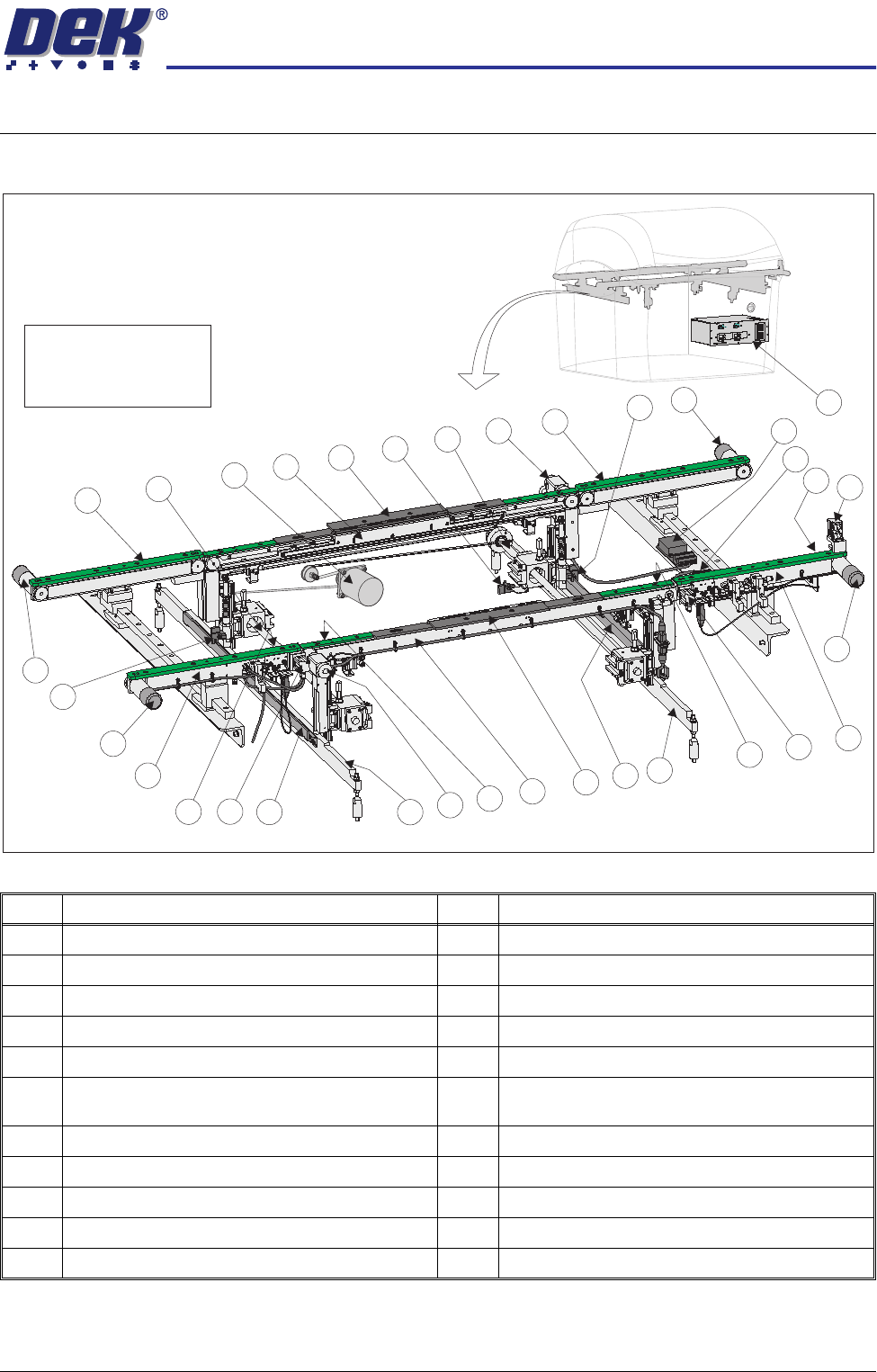 5 Conveyor Board Stop (3 positions) 16 Rail Lifted Left Sensor