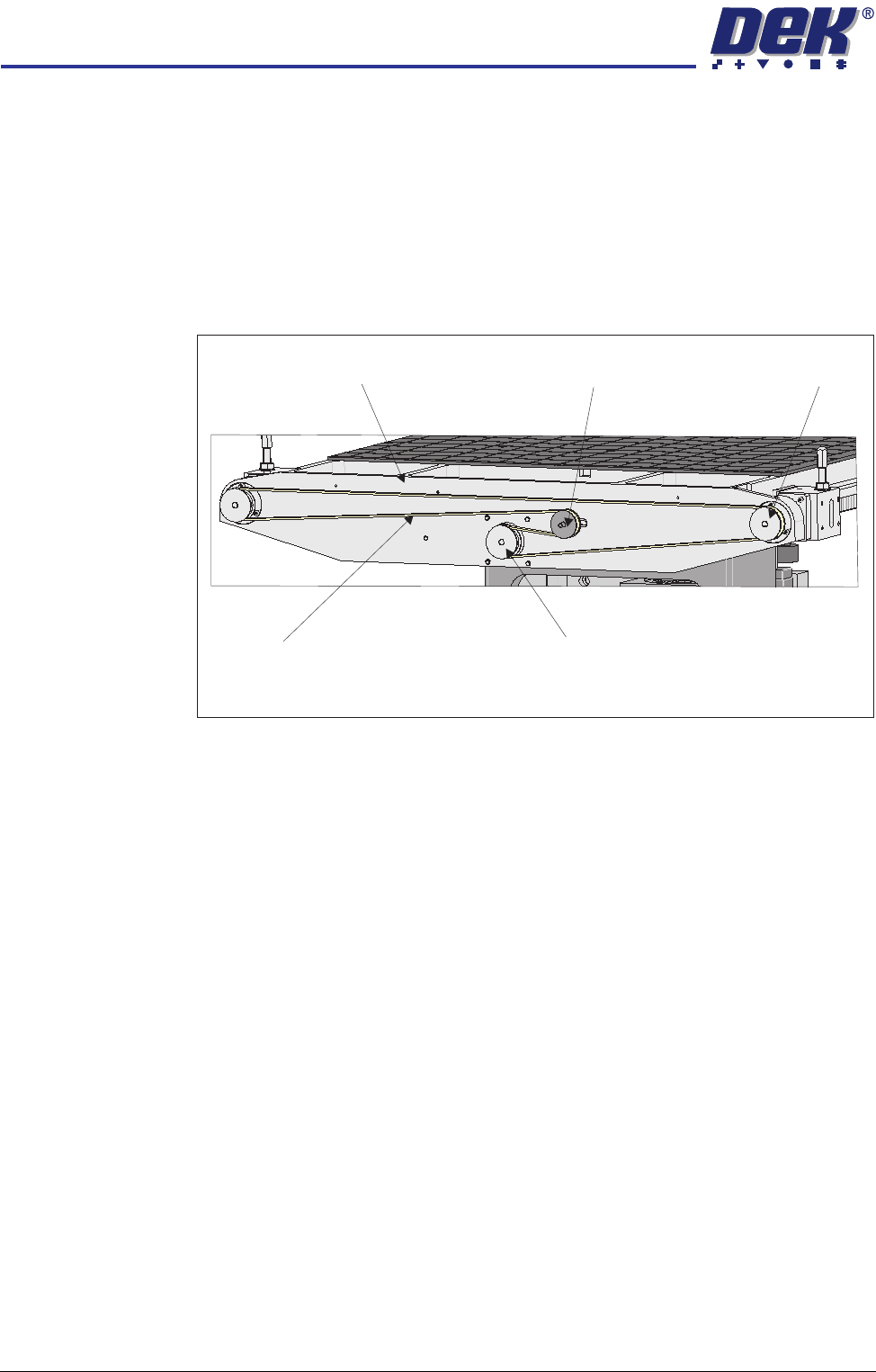 Rear Rail Drive Belt 1. At the rear of the rising table, slacken the adjustable idler pulley by means