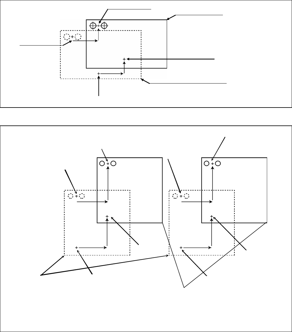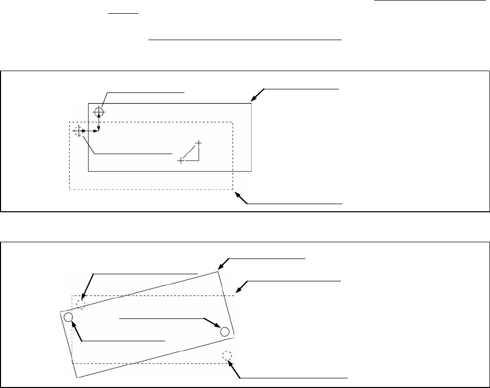 RL132 2012.0903 - 16 - ■ 基准孔识别补正 ( 补正基板偏移、倾斜 ) 通过指定 ( 示教 ) 基板上的任意孔,补正基板整体的偏 移之功能。 补正基板偏移 ········· 示教基板上的 1 孔 ( 基准孔 ) ,生产前通过识别这个示教孔,补正基 板整体的平行偏移 之功能。 补正基板倾斜 ········· 示教基板上的 2 孔 ( 对角 ) , 生产前通过识别被示教的双孔, 补正基板整体的平行偏移, 以及由于基…
