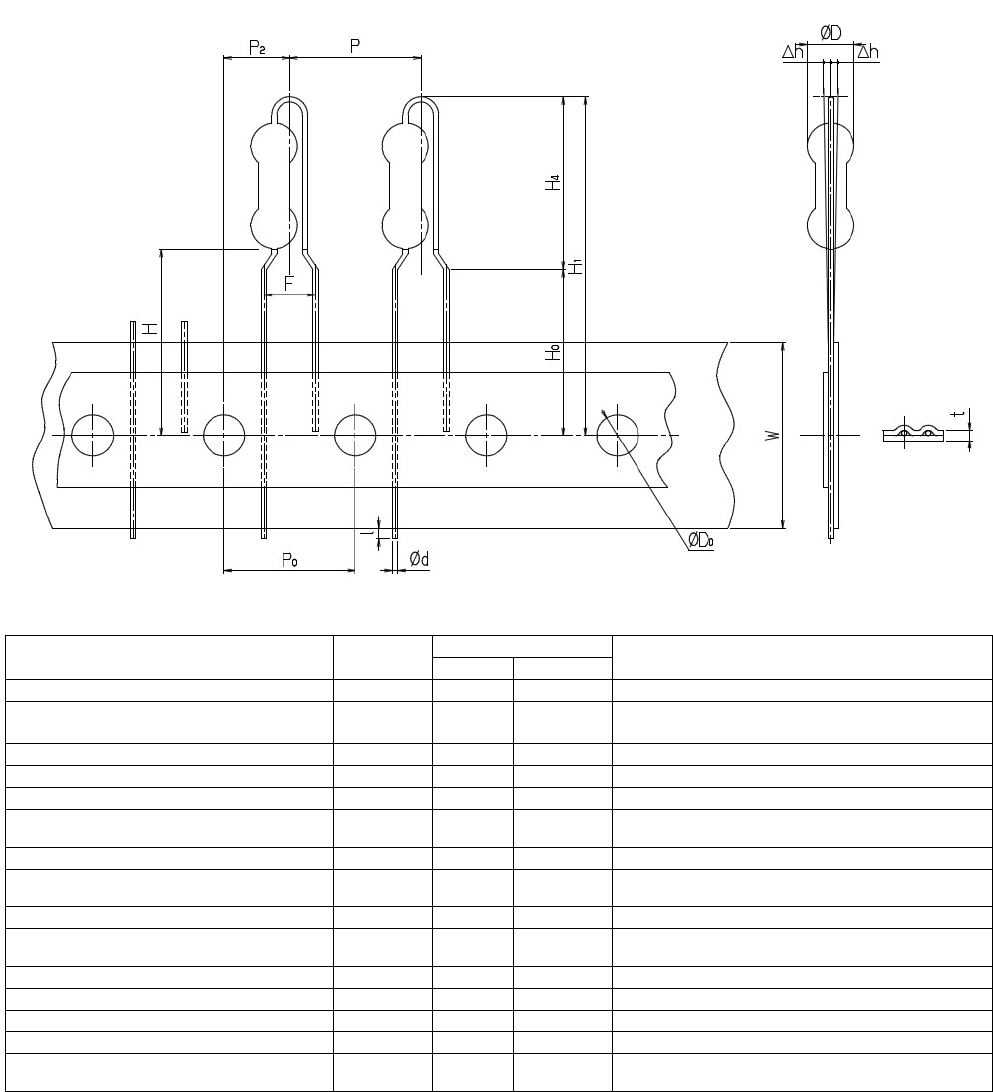 RL132 2012.0903 - 27 - 7) 电阻器 (A) 尺寸 (mm) 内容 记号 数值 容许范围 备注 元件直径 Ø D 4.5 最大 引脚线直径 Ø d 0.6 ±0.05 软铜线是 Ø 0.6 mm 硬铜线和 CP 线是 Ø 0.5±0.05 mm 元件间距 P 12.7 ±1.0 孔间距 P 0 12.7 ±0.3 累积间距误差 = 1.0mm /20 间距 从孔中心到元件中心部为止 P 2 6.35 ±1.3 引脚…