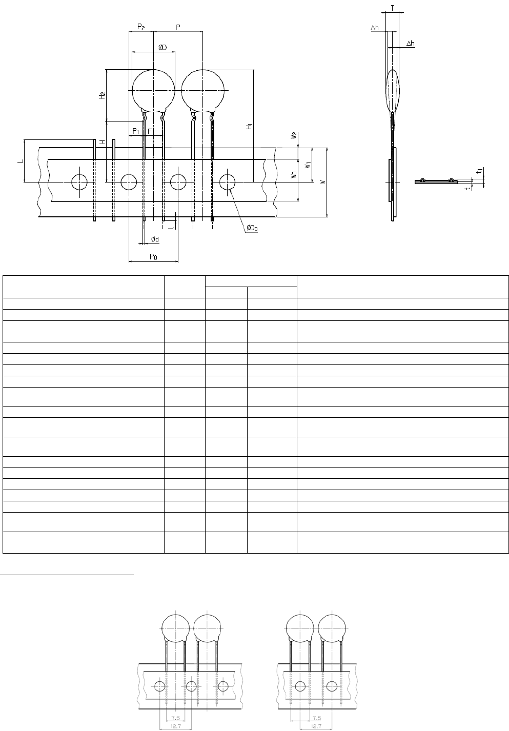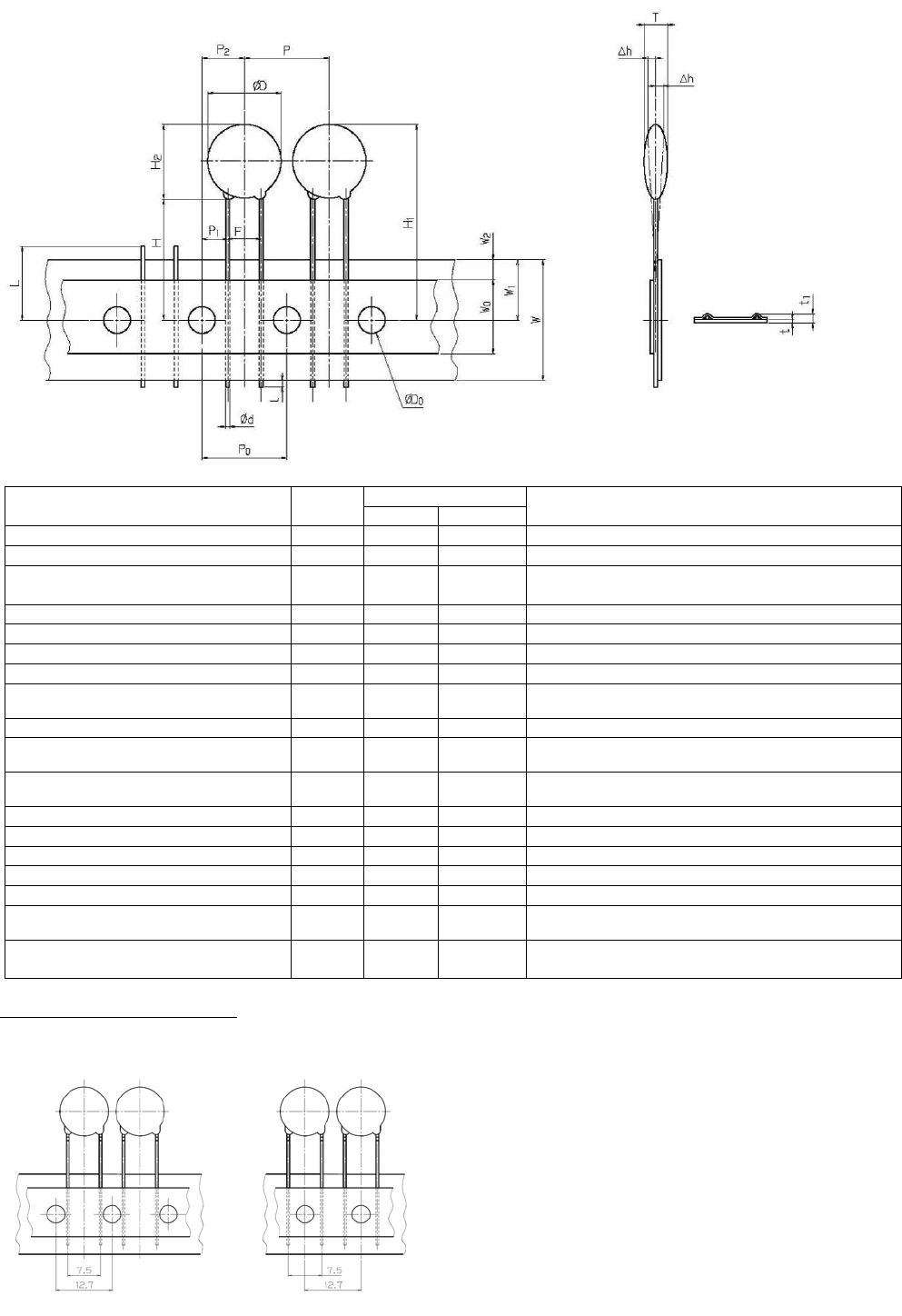从编带中心到元件底部的高度