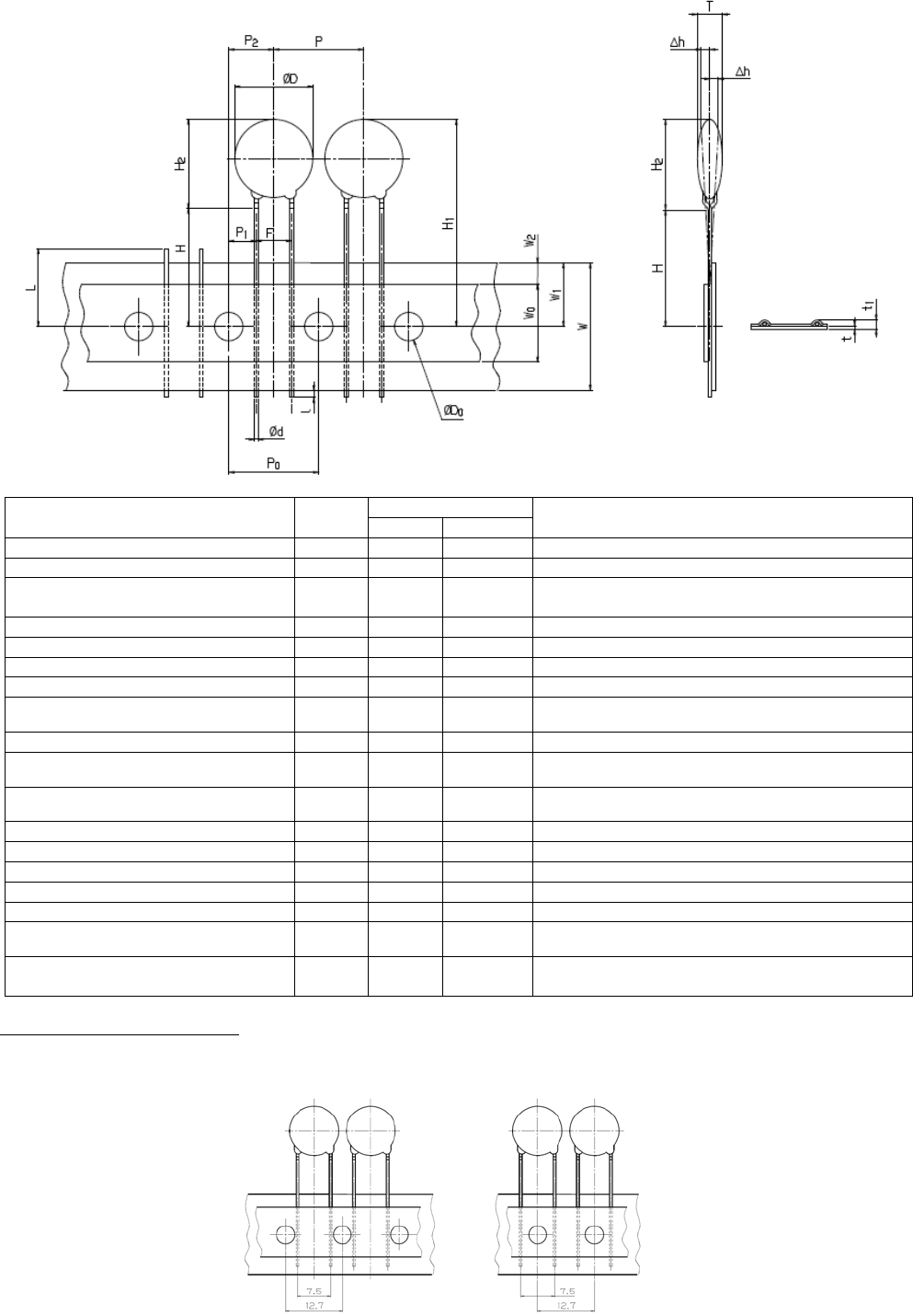 RL132 2012.0903 - 42 - 22) 长间距陶瓷电容器 ( 成型引脚 A) 尺寸 (mm) 内 容 记号 数值 容许范围 备 注 元件直径 Ø D 13.0 最大 元件厚度 T 4.0 最大 引脚线直径 Ø d 0.80 最大 软铜线是 Ø 0.8 mm ( 硬度在 H B 50 以内 ) 硬铜线是 Ø 0.6 mm ( 硬度在 H B 80 以内 ) 元件间距 P 15.0 ±1.0 孔间距 P 0 15.0 ±0.3…