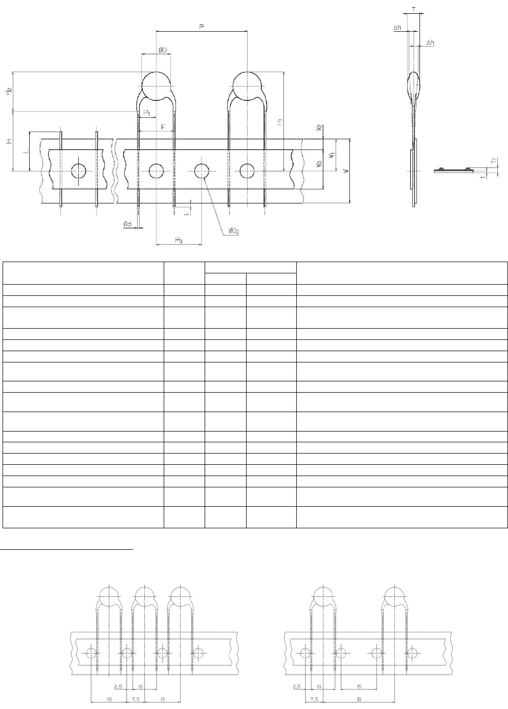 从编带中心到元件底部的高度