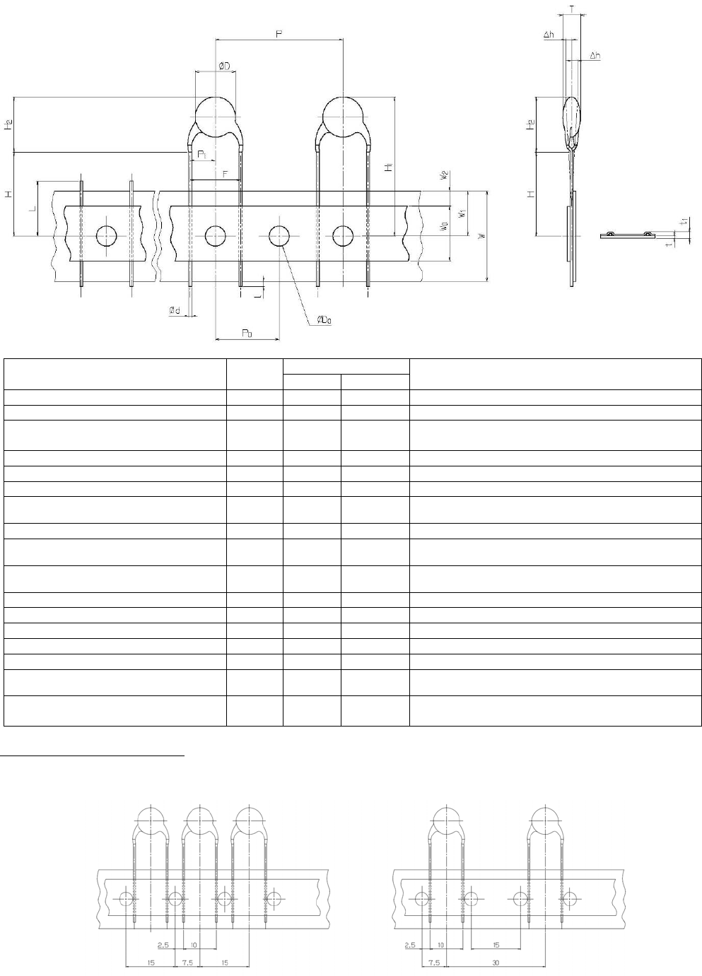RL132 2012.0903 - 44 - 24) 长间距陶瓷电容器 ( 笔直型引脚 ) 尺寸 (mm) 内 容 记号 数值 容许范围 备 注 元件直径 Ø D 9.0 最大 元件厚度 T 4.5 最大 引脚线直径 Ø d 0.8 最大 软铜线是 Ø 0.8 mm ( 硬度在 H B 50 以内 ) 硬铜线是 Ø 0.6 mm ( 硬度在 H B 80 以内 ) 元件间距 P 25.4 ±1.0 孔间距 P 0 12.7 ±0.3 累…