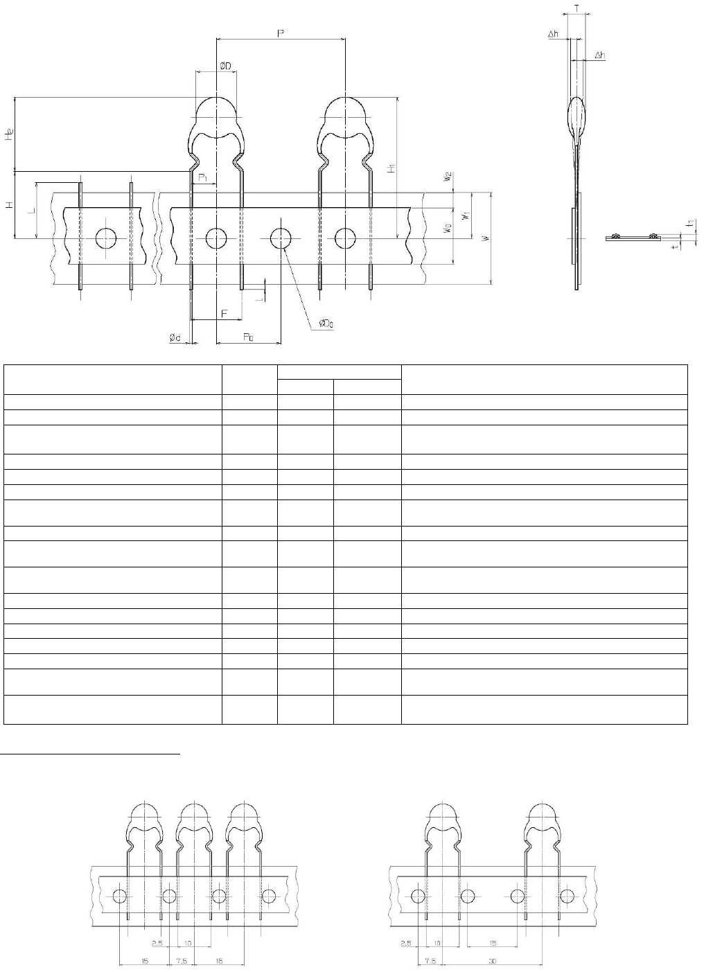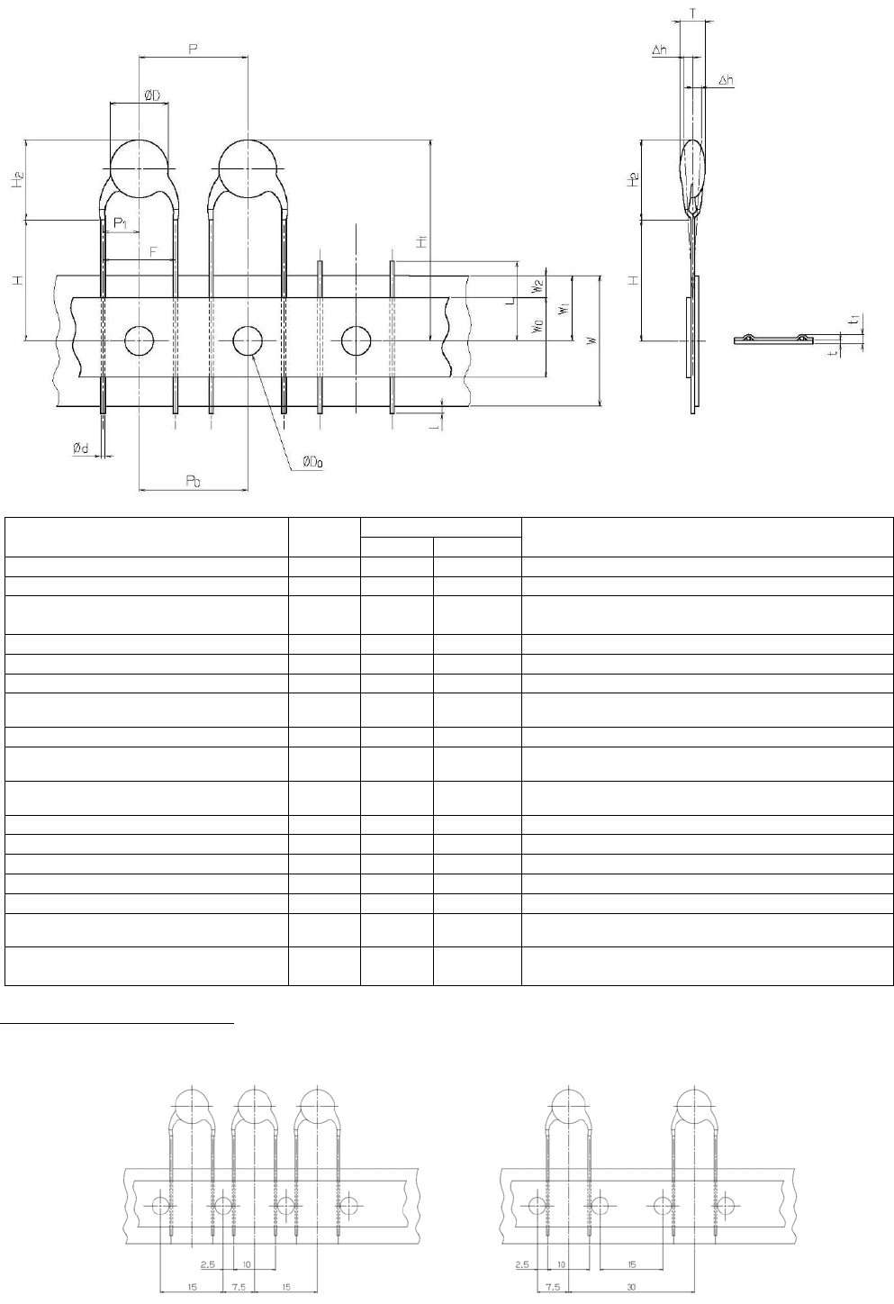 RL132 2012.0903 - 47 - 27) 长间距陶瓷电容器 ( 笔直型引脚 ) 尺寸 (mm) 内 容 记号 数值 容许范围 备 注 元件直径 Ø D 9.0 最大 元件厚度 T 4.5 最大 引脚线直径 Ø d 0.8 最大 软铜线是 Ø 0.8 mm ( 硬度在 H B 50 以内 ) 硬铜线是 Ø 0.6 mm ( 硬度在 H B 80 以内 ) 元件间距 P 15.0 ±1.0 孔间距 P 0 15.0 ±0.3 累…