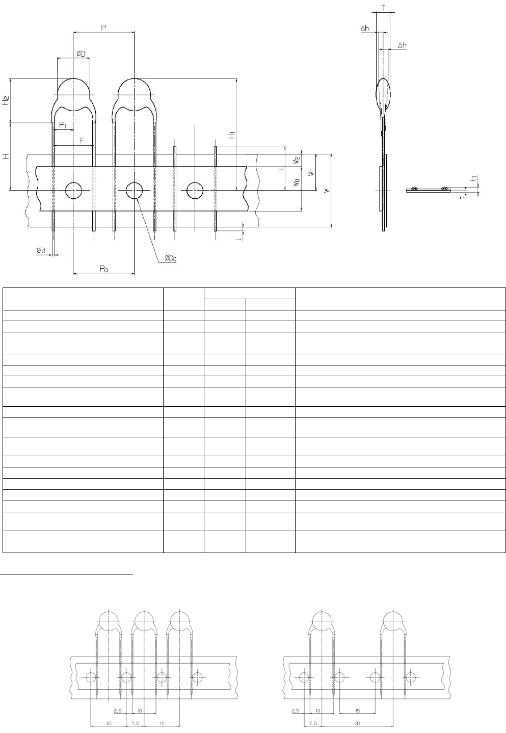 从编带中心到元件底部的高度