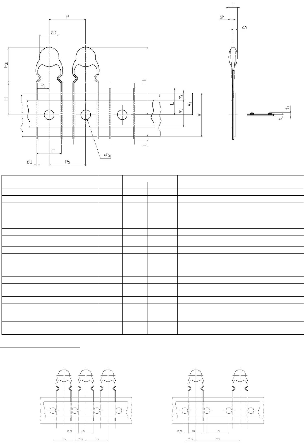 从编带中心到元件底部的高度