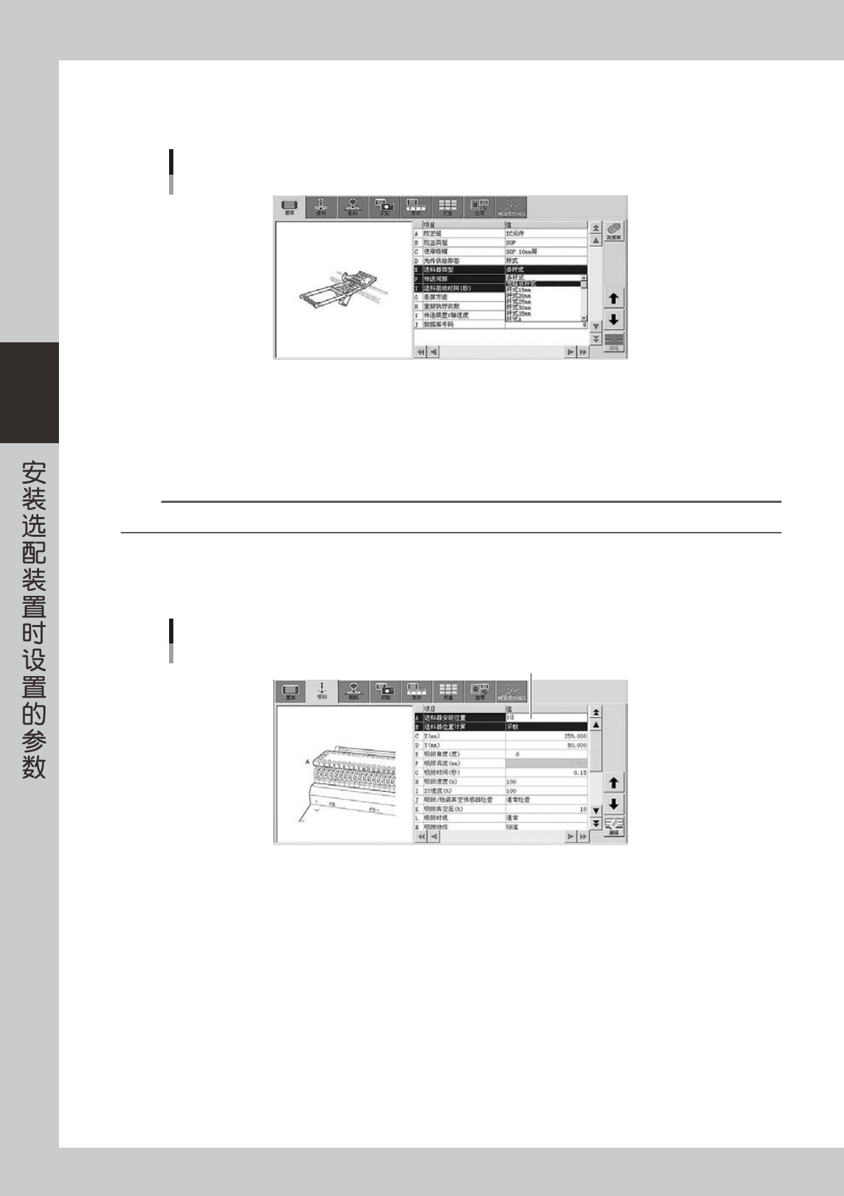 设置吸料参数画面的“送料器安装位置”栏。