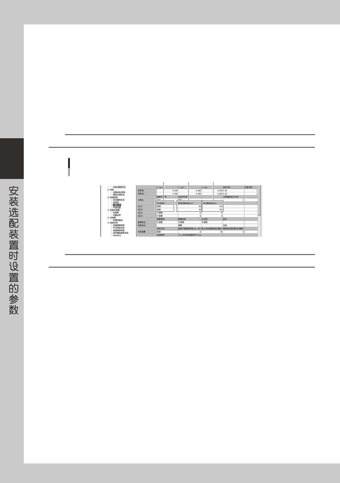 安装在前后侧的料带切刀可以分别设置下列项目。一般,前侧为“切刀 1”,后侧为“切刀 2”。