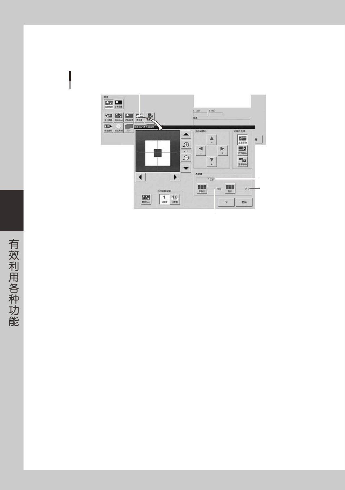 组框中的按钮,调整画面中显示的坏板标记适当值的查找范围 ( 红框 )”,按 [ 检出 ] 按钮,则自动输入