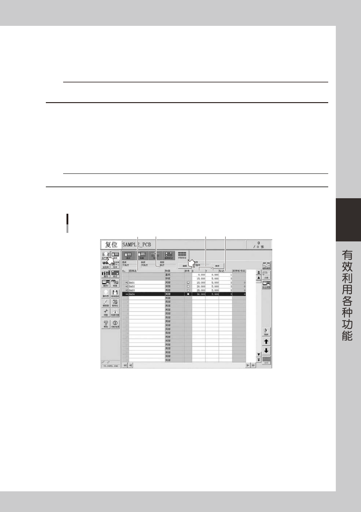 数据中设置的坏板标记,来指定是否进行该贴装数据的元件贴装。想要使用局部坏板标记,必须进行必要的数据
