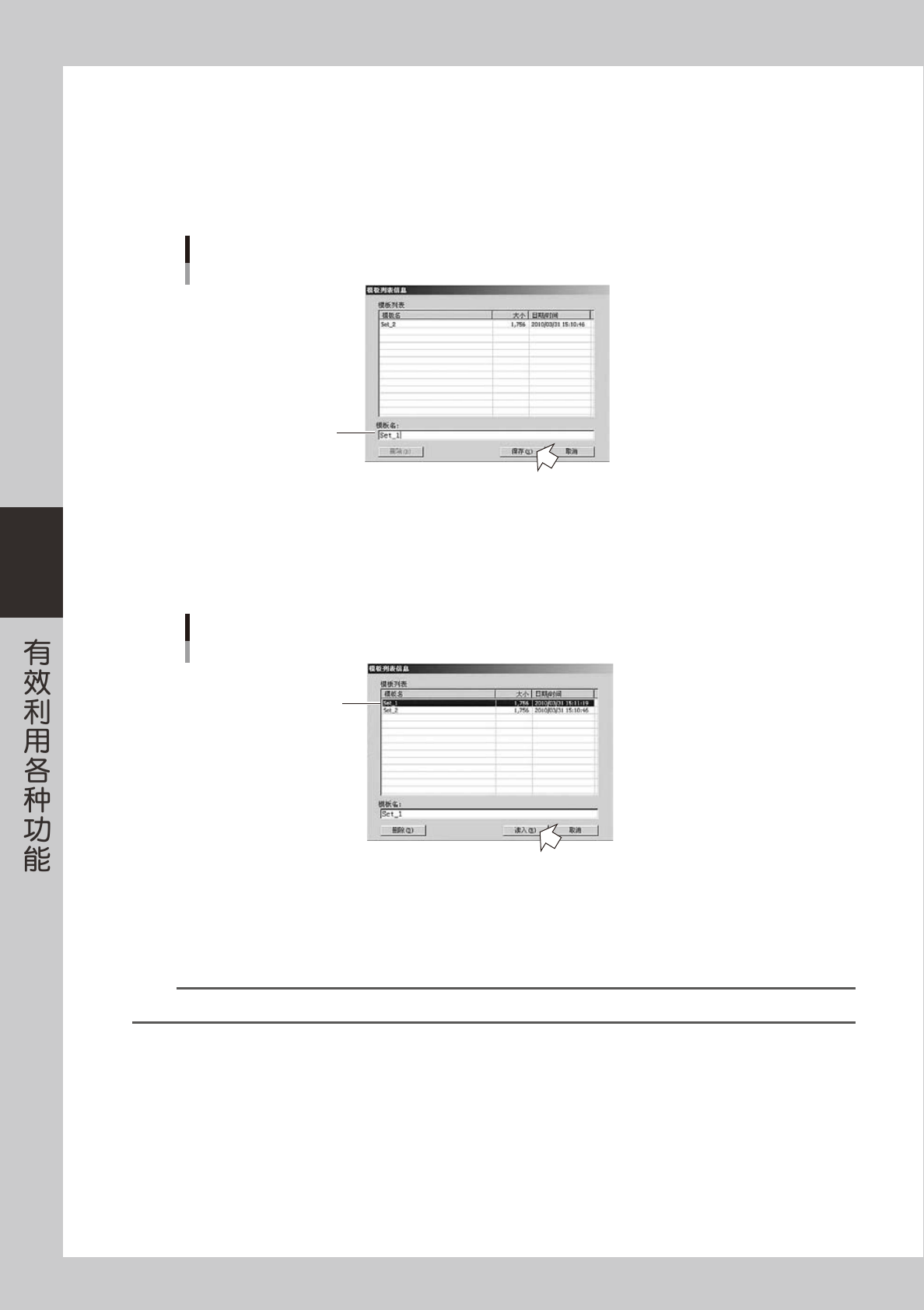 按 [ 选择 ] 按钮,打开“模板列表信息”画面。选择模板,按 [ 读入 ] 按钮。
