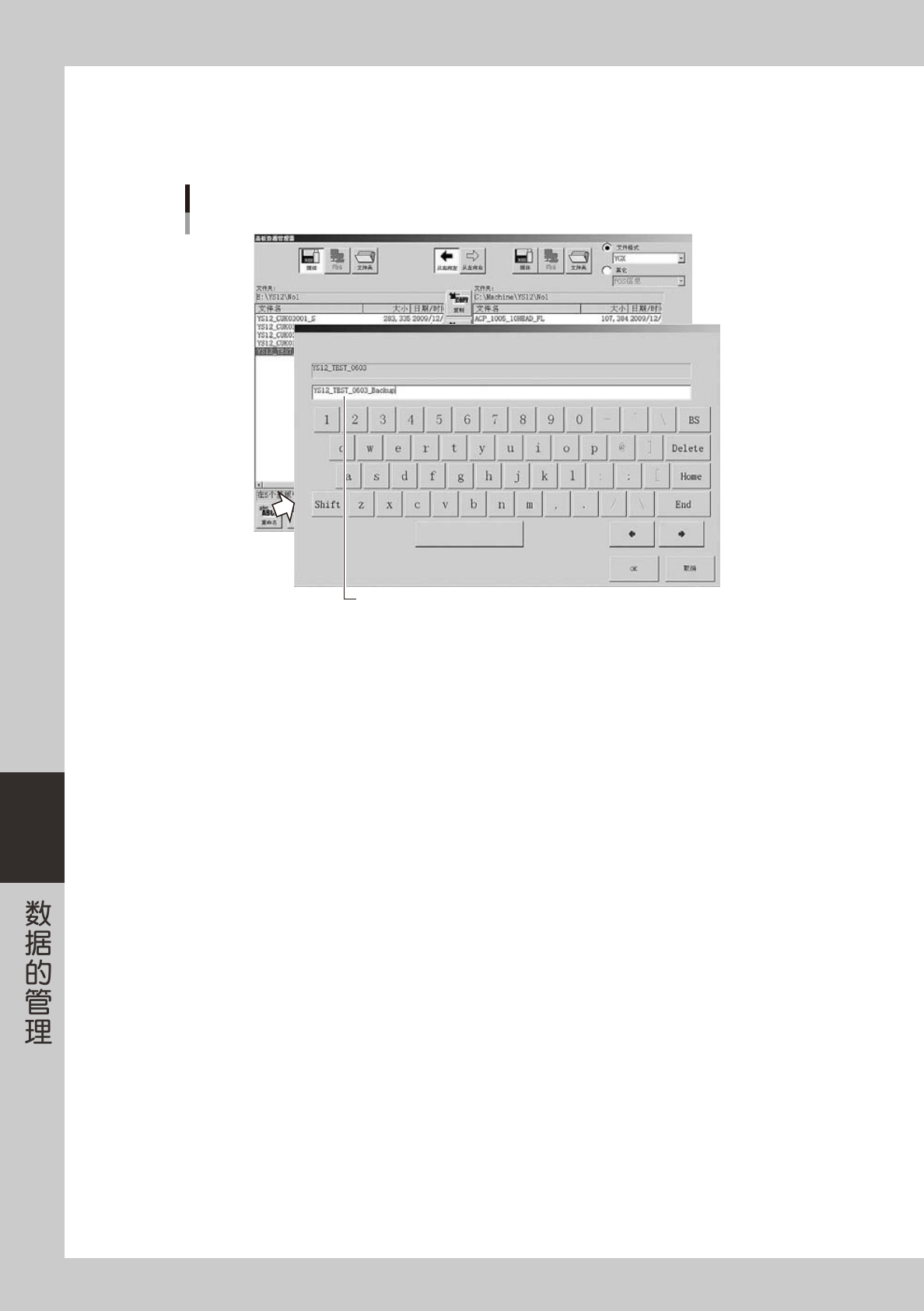 按左下方的 [ 重命名 ] 按钮后,显示键盘对话框。输入新的基板名后,按 [OK] 按钮。