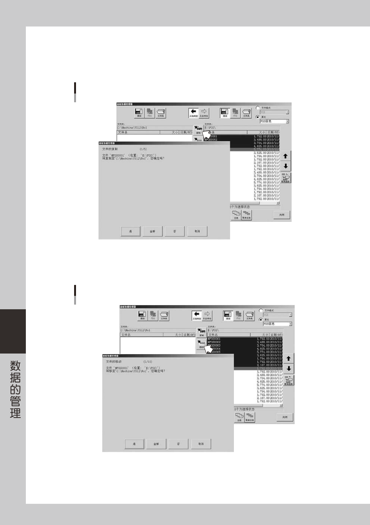 管理器的确认画面,确认内容后按 [ 是 ] 或 [ 全部 ] 按钮,数据被复制。