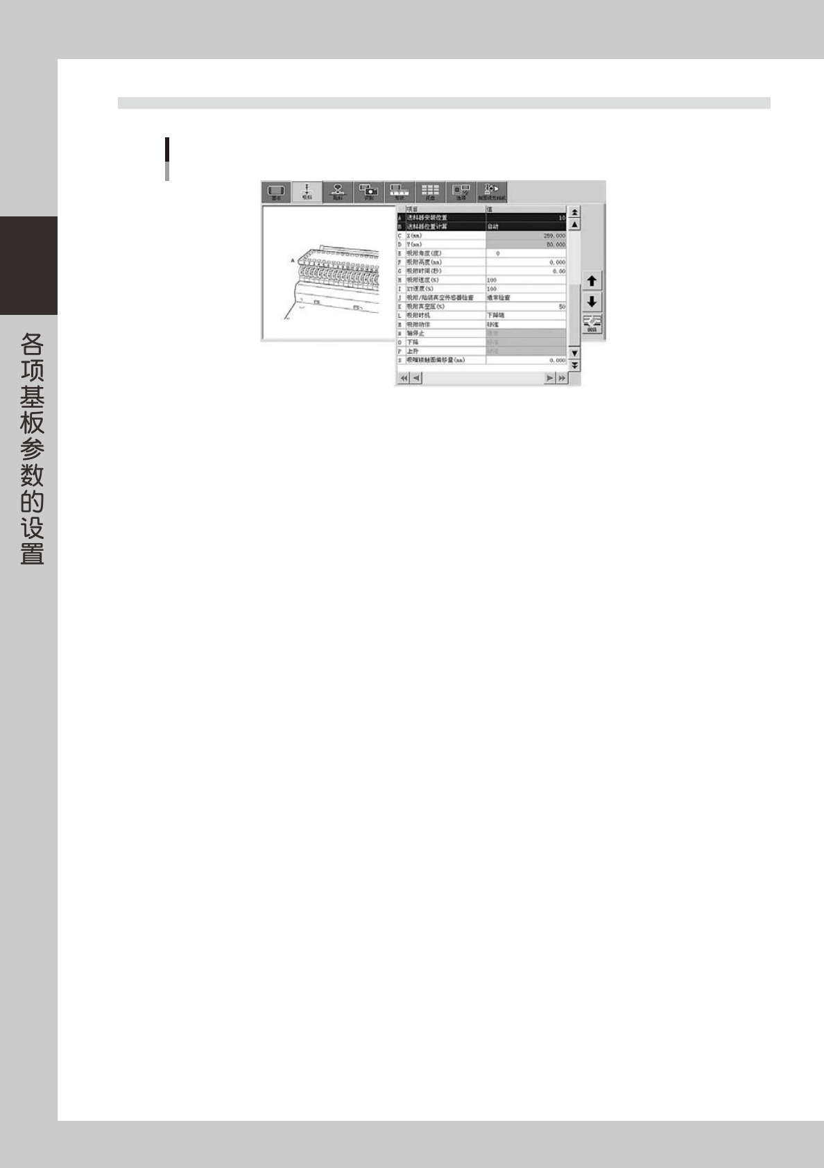 只有将“机器设置”-“选项设置”画面中的“指定送料器的走带间距”栏设置为“在基板程序中设置”时,才显示此参数。