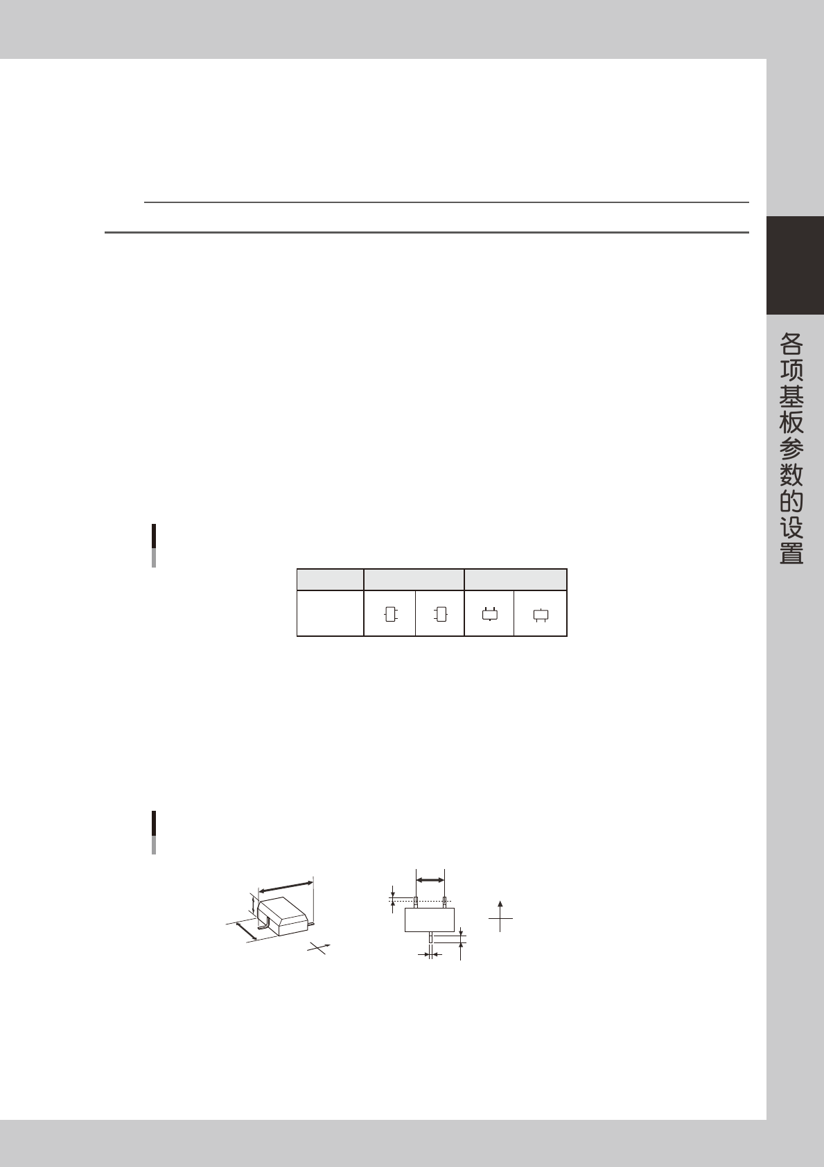 2-36 2 ■ SOP 元件 A、B: 外形尺寸 XY 输入用游标卡尺、千分尺测得的包括引脚在内的外形尺寸的准确数值 (mm)。 C: 外形尺寸、元件厚度 输入用游标卡尺、千分尺测得的准确数值 (mm)。 D: 检测线位置 设置从引脚的前端到内侧位置的哪个位置为检测引脚的检测线。一般使用默认值。 E: 检测线宽度 指定检测引脚的检测线的宽度。引脚的长度为 0.0 〜 0.3mm 的元件设置为“1 〜 2” ,0.3 以上的元件设置为“…