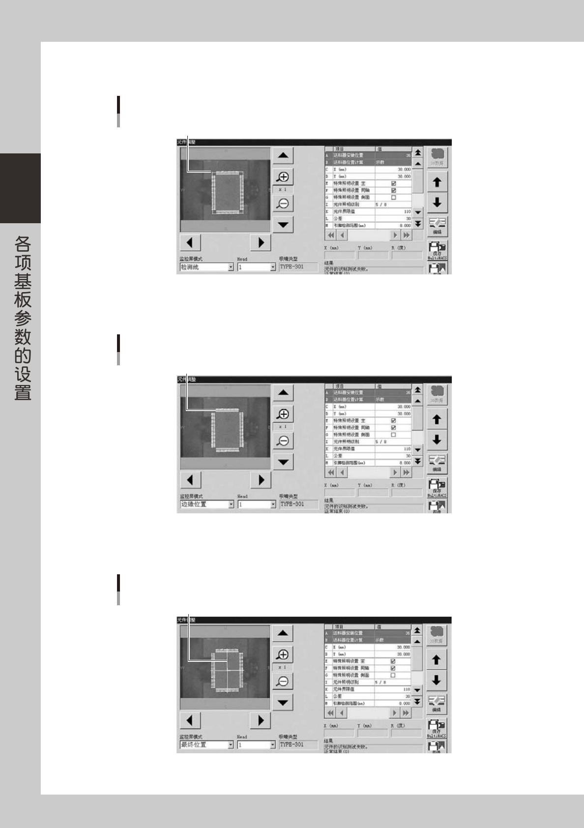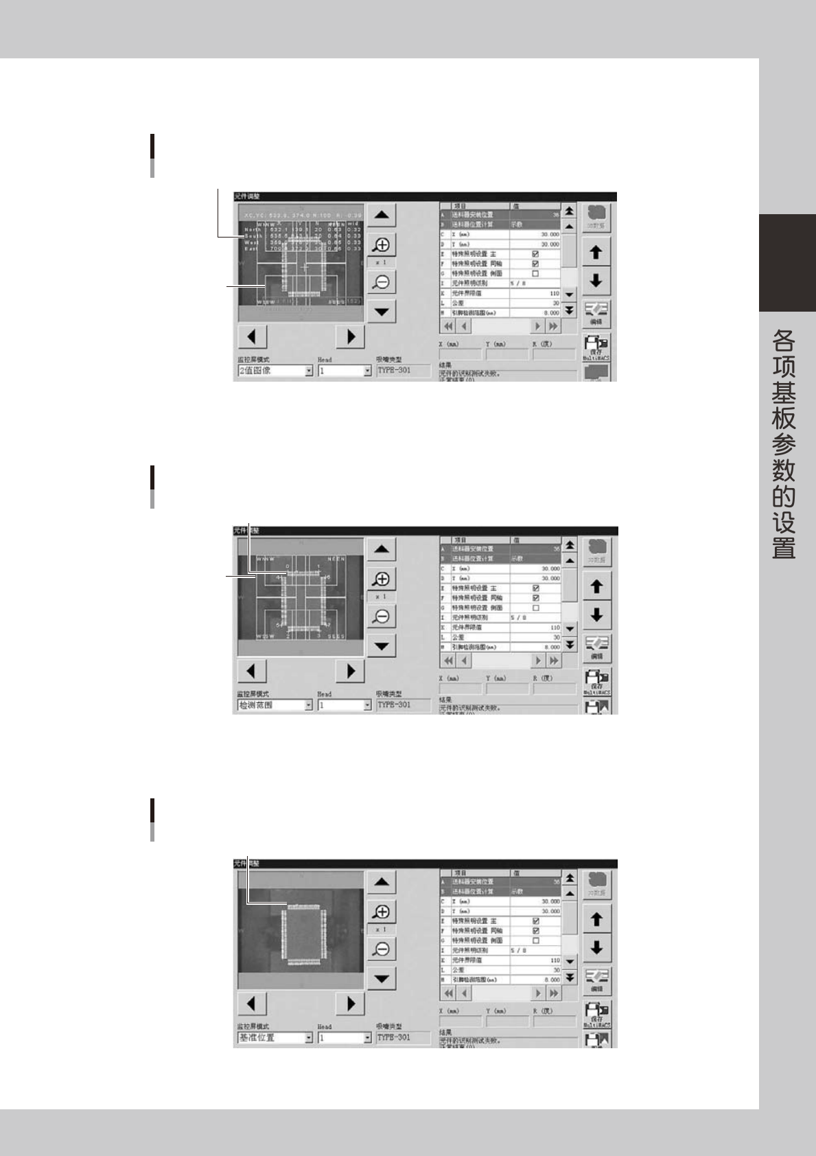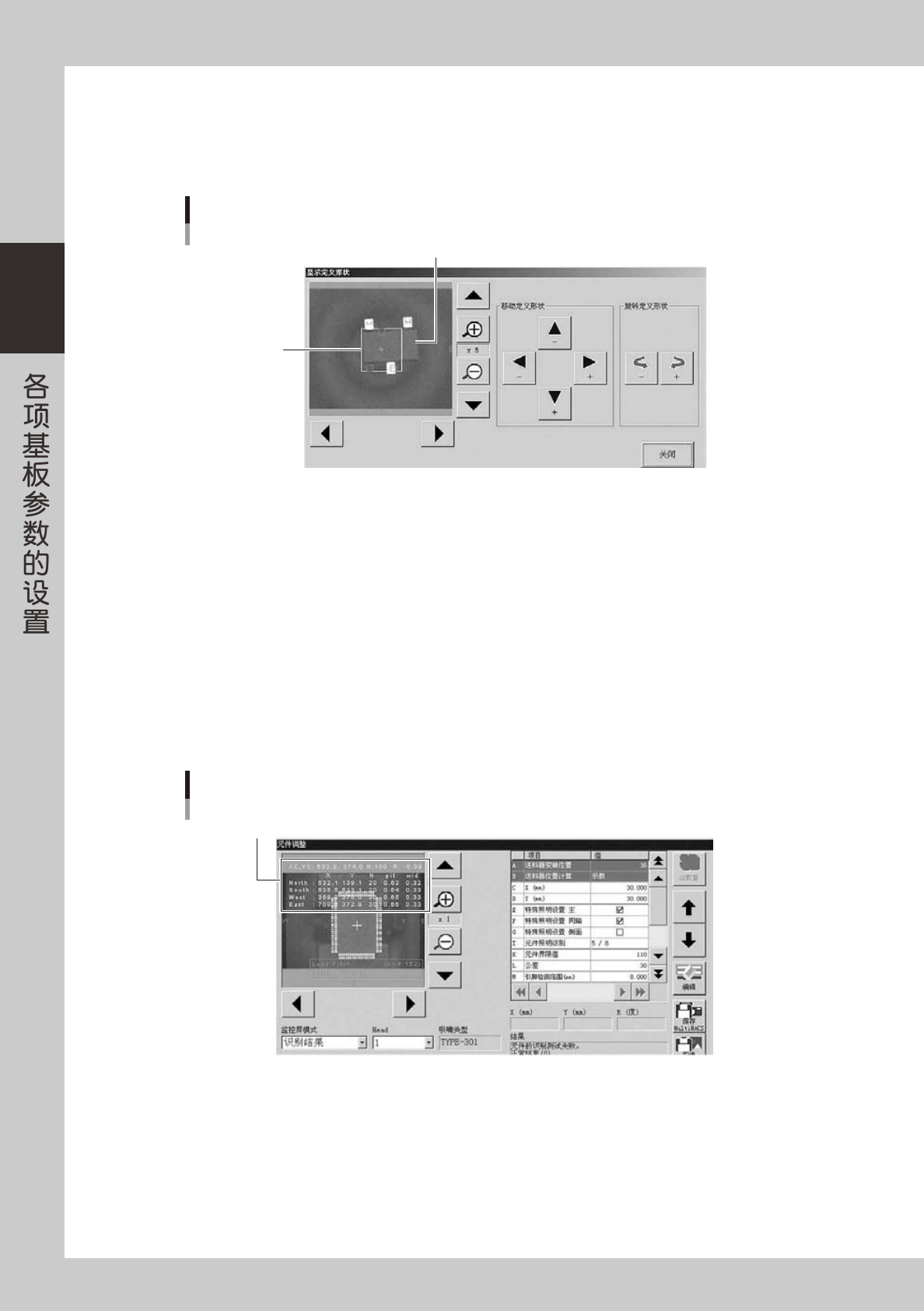 2-47 2 · 2 值图像 可确认 2 值图像、中心位置、数值及搜索范围。显示识别结果与检测范围 ( 检测引脚边端用的范围 )。 监控屏模式为“2值图像”时 显示识别结果 显示检测范围 26254-P2-00 · 检测范围 可确认搜索范围和检测到的引脚边端。显示检测引脚边端用的检测范围,并以十字标记显示所检出的引脚边端。 监控屏模式为“检测范围”时 以“+”显示引脚边端 显示搜索范围 26255-P2-00 · 基准位置 可确认引脚前…