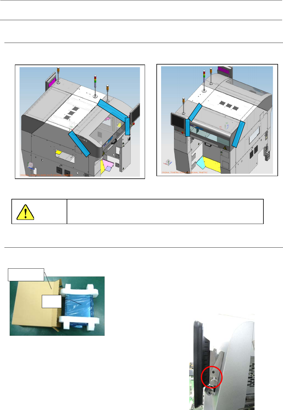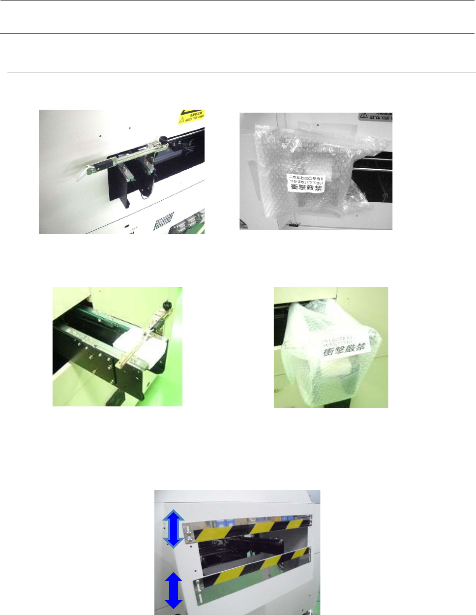 安装要领书 2-3 2.4 基板的传送 请取下传送轨端部的 气泡包装材料。 图 2-4-1 ( 基板 规格时 ) 图 2-4-2 ( 传送 加长选项时 ) 有传送防护罩选项时 ,应根据传送基板 的贴片部 件高 度, 调节上下 档板 的位置。 图 2-4-3 ( 有传 送防护罩选 项时 )