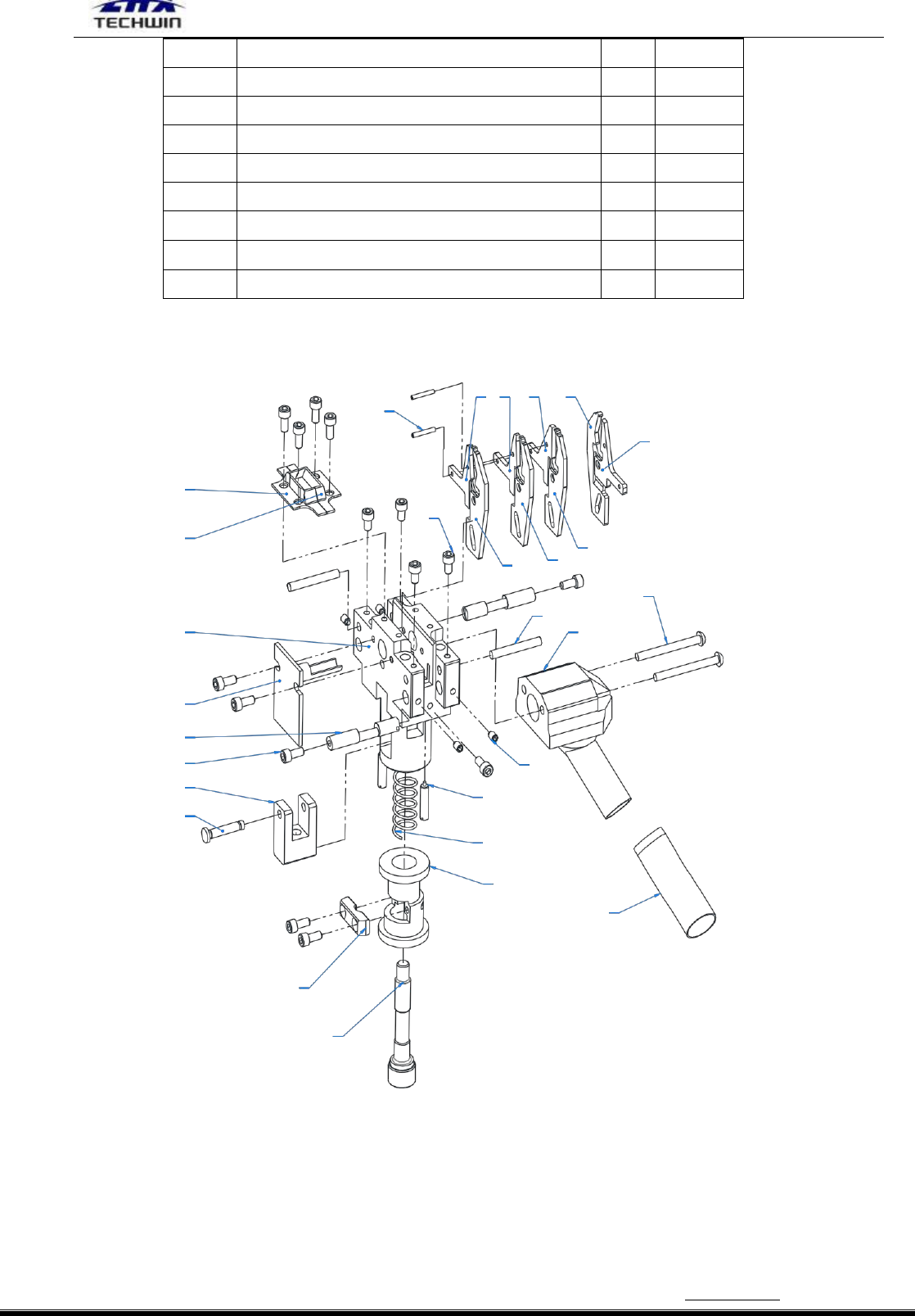 ZHX-R20B /-IN 自 动 下板 立式 插件 机操 作说 明书 - 54 - 深圳市中 禾旭精密机械 有限公司 - 54 - www.zkdi p.com 7.5 剪脚头零件明细 项目号 零件号 数量 备注 1 LS75-02031 7.5 剪脚头本体 1 2 LS75-02024 7.5 剪脚弯刀 2 2 3 LS75-02025 7.5 剪脚弯刀 3 1 4 LS75-02026 7.5 剪脚切刀 2 2 5 LS75-02…