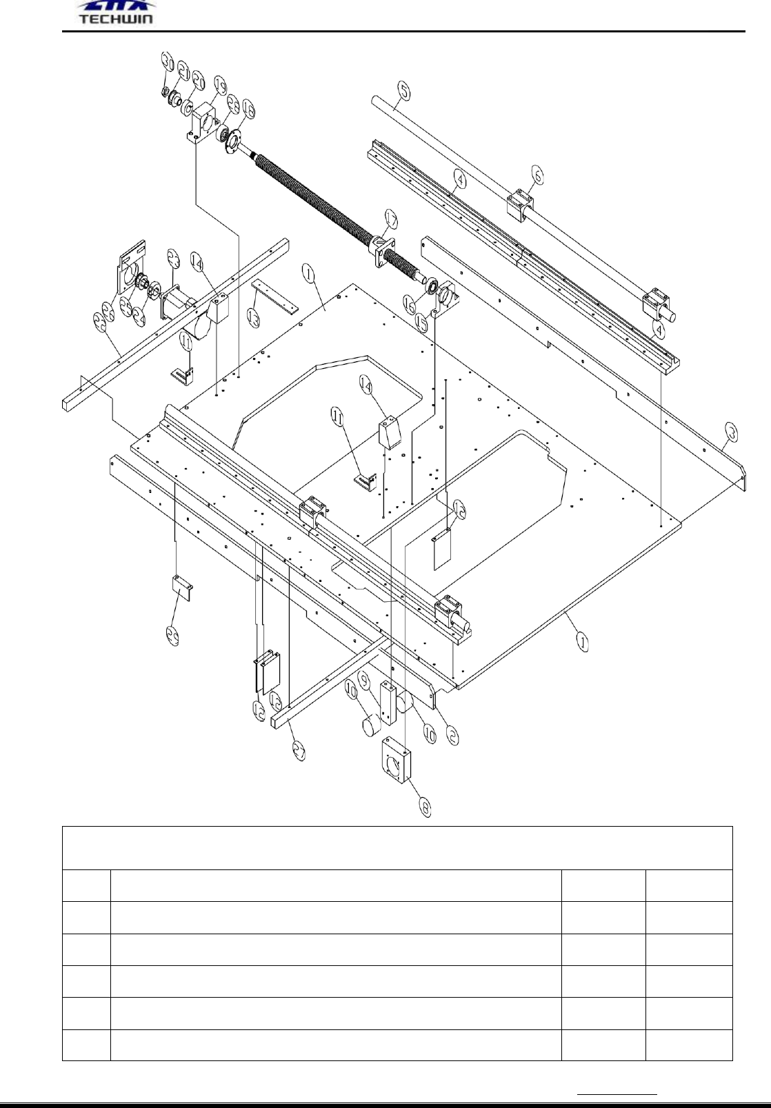 ZHX-R20B /-IN 自 动 下板 立式 插件 机操 作说 明书 - 57 - 深圳市中 禾旭精密机械 有限公司 - 57 - www.zkdi p.com 工作台零件 清单 1 序号 中文名称 编号 数量 单位 1 导轨座 1 LS1D-03001 2 个 2 XY 轴丝杆 LWGY-00082 1 条 3 X 轴丝杆螺母固定座 LWGY-00026 1 个 4 X 轴承座 1 LWGY-00008 1 个 5 轴承 6202Z…