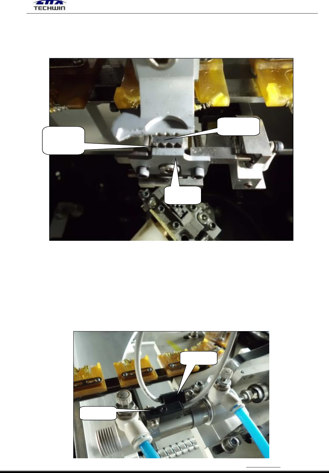 ZHX-R20B /-IN 自 动 下板 立式 插件 机操 作说 明书 - 74 - 深圳市中 禾旭精密机械 有限公司 - 74 - www.zkdi p.com 7 ) CTA 卡 料 座 子 位 置 调 整 。 ( 1 ) 打开机 器电 源, 并用“ 诊断” 将 CTA 打 出 。 ( 2 ) 松开 固紧 镙丝 ,并 移动 螺丝 ,使 夹料 片(LS1D-04031)与送 料槽 片(LS1D-04032)之间开 口间隙为 2-3mm…