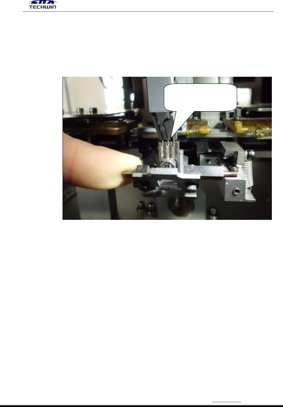 3)松开 CTA 下面的三个固紧螺丝,然后转动调整螺丝,使标准件的两脚正好在送料槽片的两