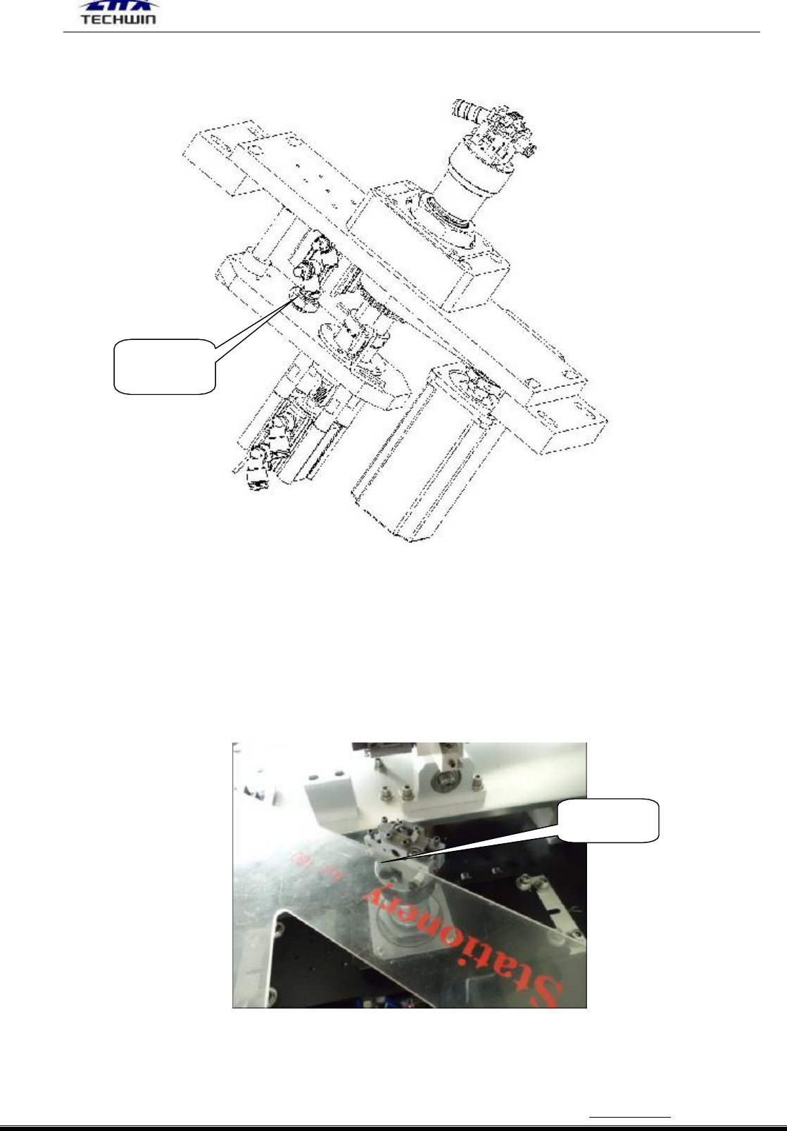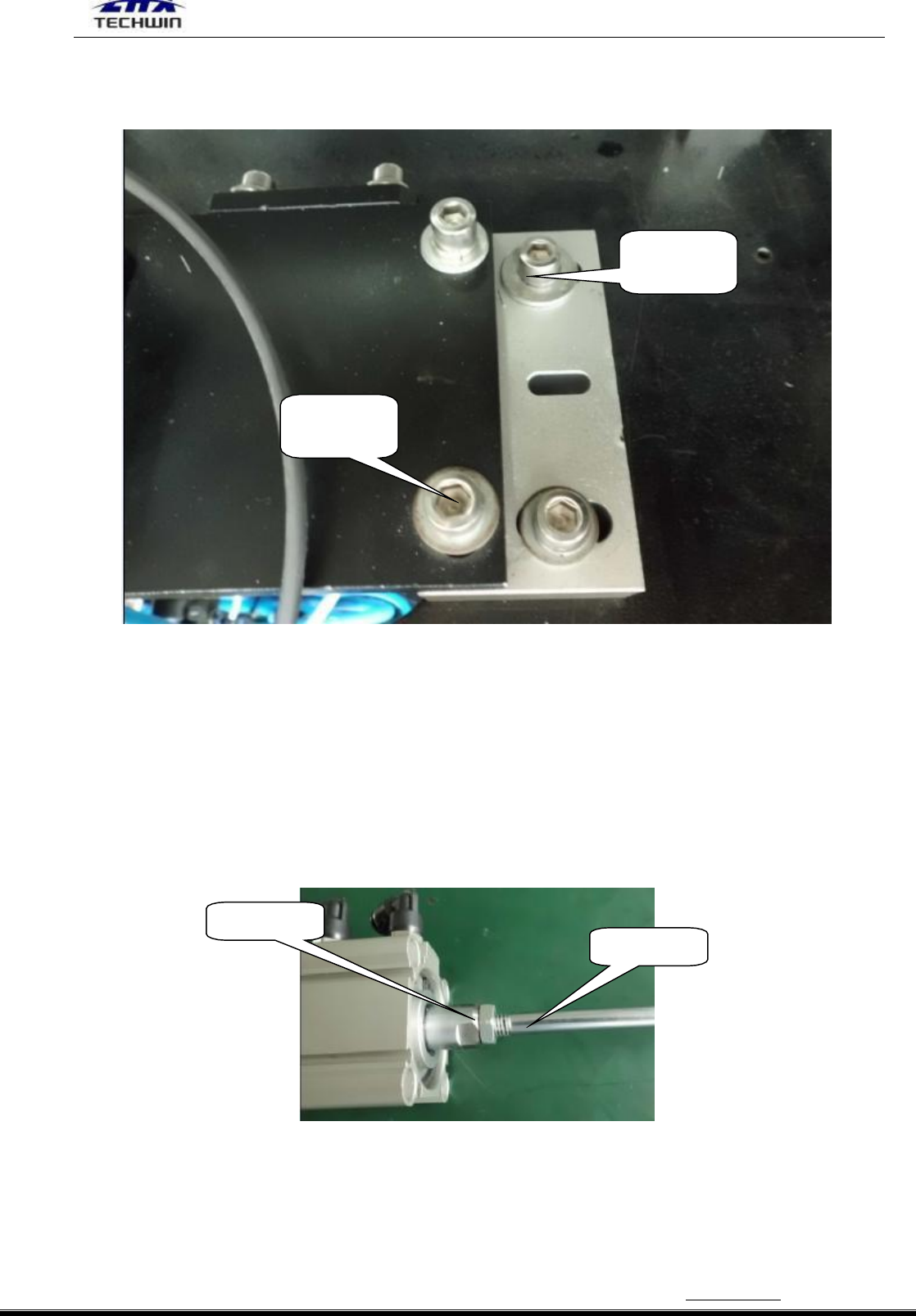 34 气缸连杆上的螺母(M6),可调节行程。顺时针方向转动连杆为调短,逆时针方