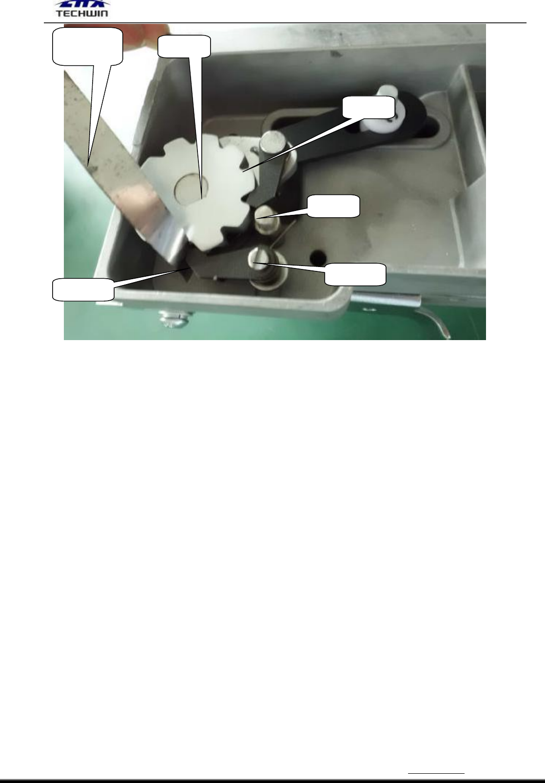 (4) 如元件没有位于槽中心,松掉送料轮上的两个紧固螺钉。