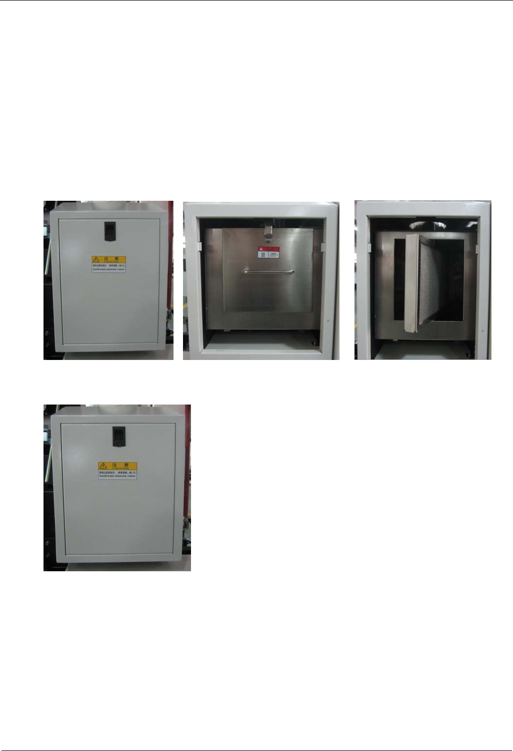 )等清洗完后的过滤网表面溶剂挥发干净后,将过滤网插入抽风箱内,装上抽风箱封板。