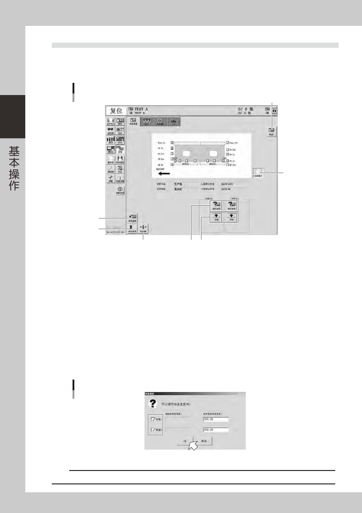 按 [ 传送宽度 ] 按钮,显示调节传送宽度的对话框,确认传送宽度之后按 [OK] 按钮。传送宽度变为指定的宽度。