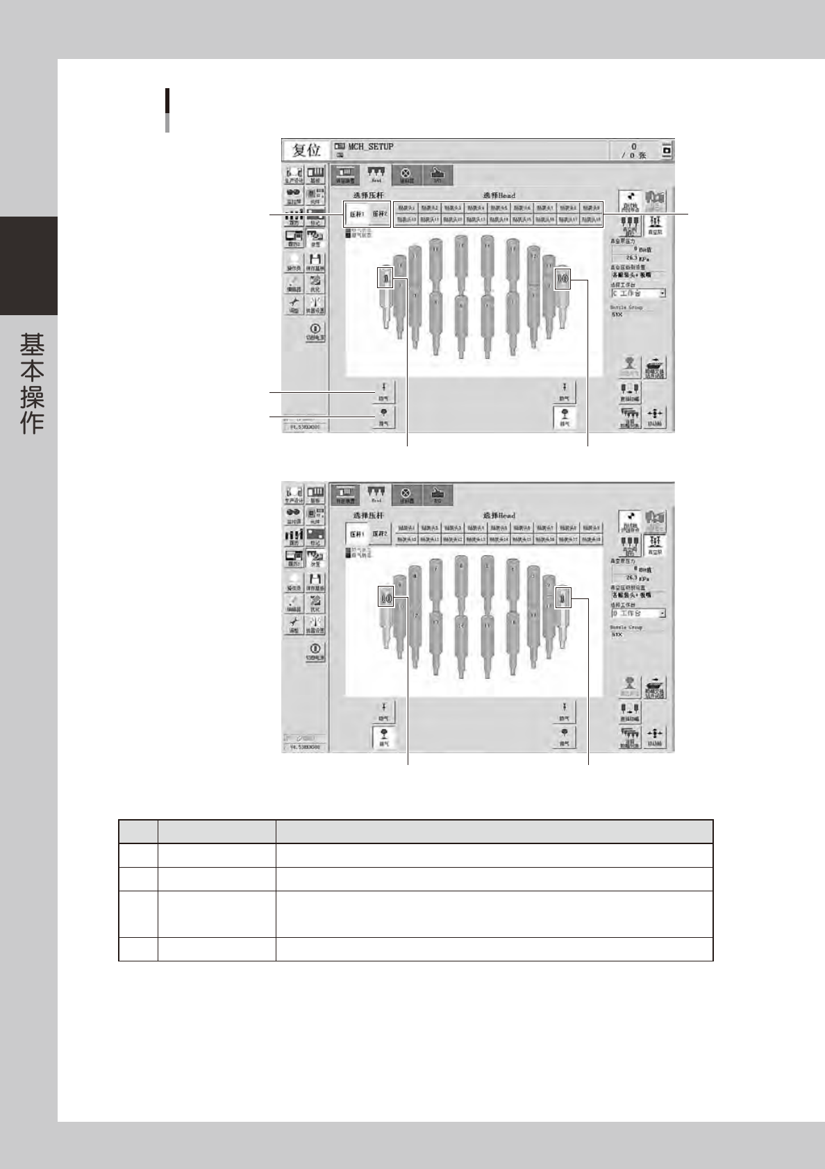 2-21 2 ■ 贴装头手动操作画面 “Head”选项卡 以MU贴装头的画面为例 1 2 7 8 10 9 6 5 3 4 26207-N9-00 按钮名 功能 1 吸气 打开或关闭各贴装头的吸气。 2 排气 打开或关闭各贴装头的排气。 3 检查回弹异常 检查吸嘴的回弹状态是否正常。 4 真空泵 打开或关闭真空泵。 5 选择工作台 从下拉框中选择需要显示的工作台。 6 清洁排气 显示是否进行吸嘴轴排气的确认画面。 7 吸嘴交换站开闭器 …
