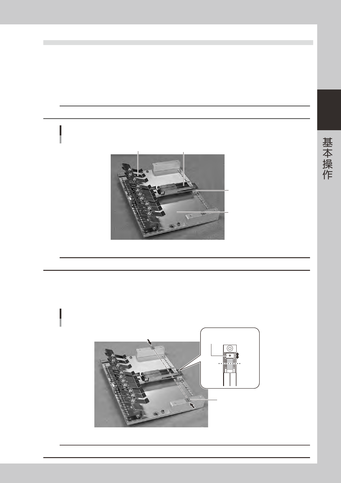 2-53 2 4.4 宽幅多杆式送料器 4.4.1 传料轨与料杆的安装 1 将传料轨安装在安装板上。 将与料杆宽度一致的传料轨安装在安装板上,并用螺钉固定。 如果传料轨的高度低于安装板的高度,必须使用附带的垫块垫在传料轨与安装板之间,使吸附高度一致。 n 要点 有关吸附高度与料杆高度的详细内容,请参阅《SS FEEDER 用户操作手册》 。 传料轨的安装 安装板 垫块 传料轨 料杆压板 25231-N9-00 c 注意 传料轨务必使用 …