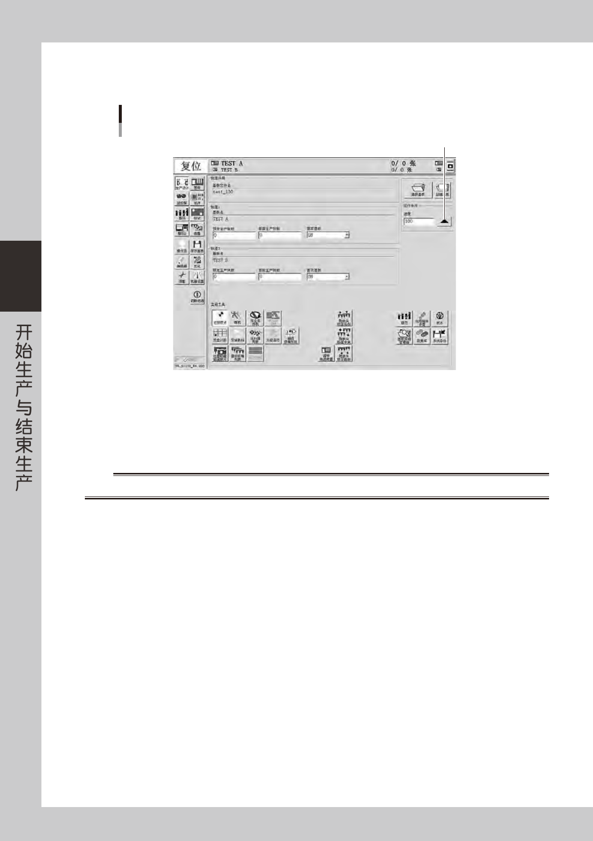 运行条件中的“速度”栏显示当前设置的运行速度。需要调节运行速度时,按 [ ▲ ] 按钮。