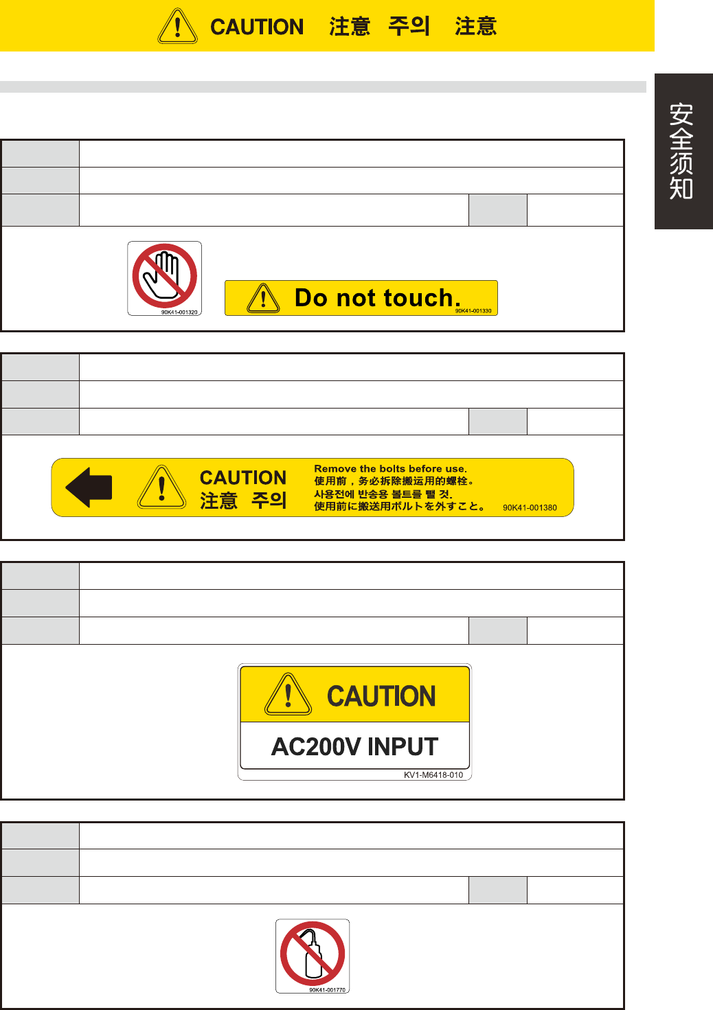 安全防范 使用之前,务必拆除搬运用的螺栓。