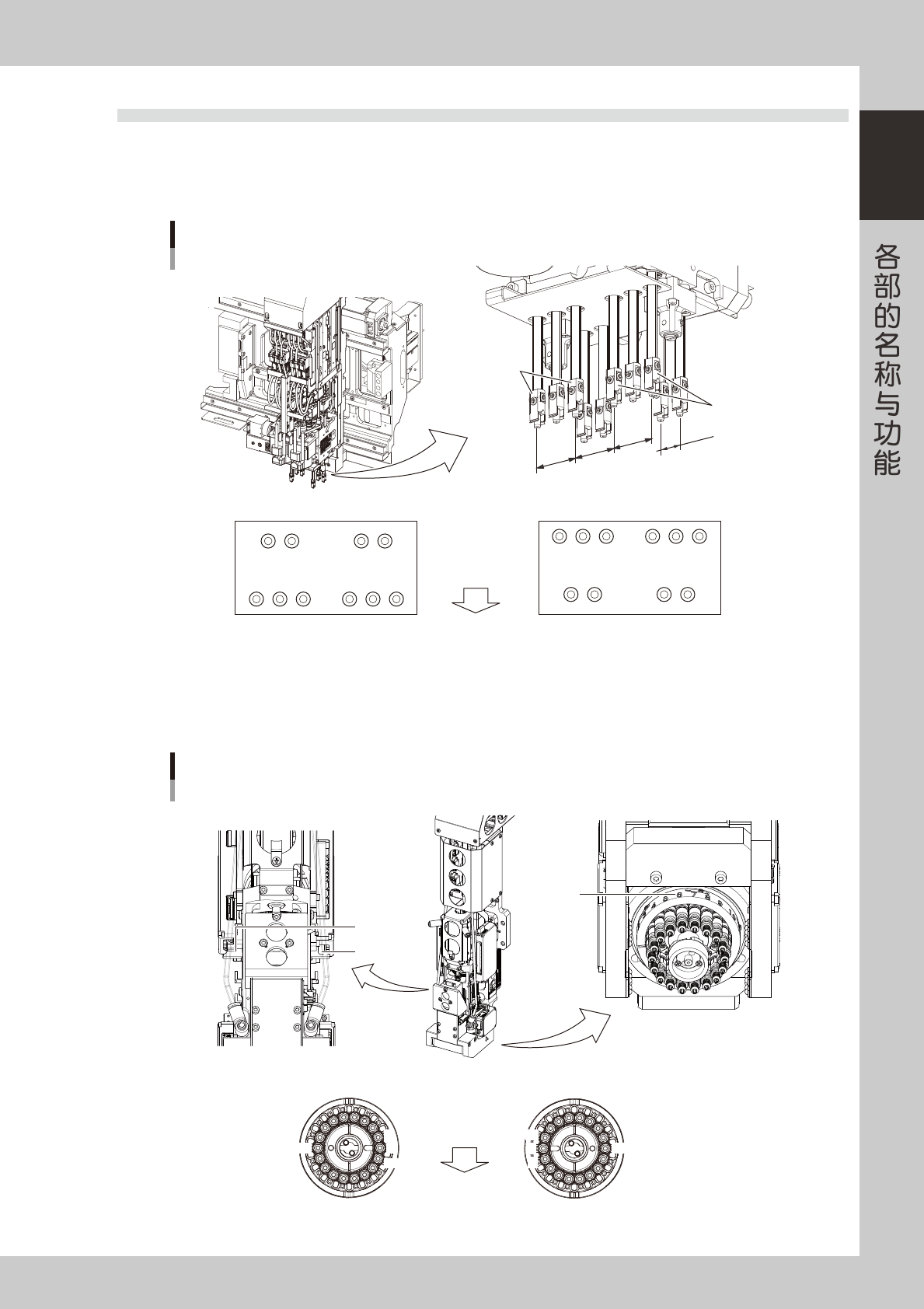 根据机器结构,最多可装配 4 台贴装头组。本章节,主要介绍贴装头的结构与吸嘴的种类。