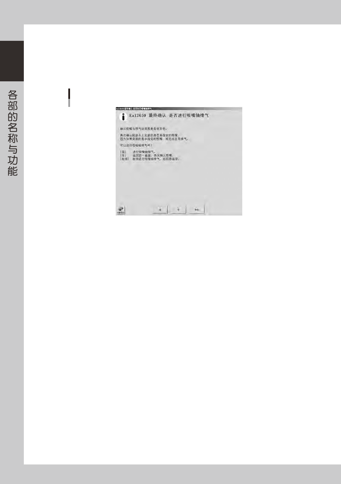 [ 是 ] 按钮 :进行吸嘴轴排气。