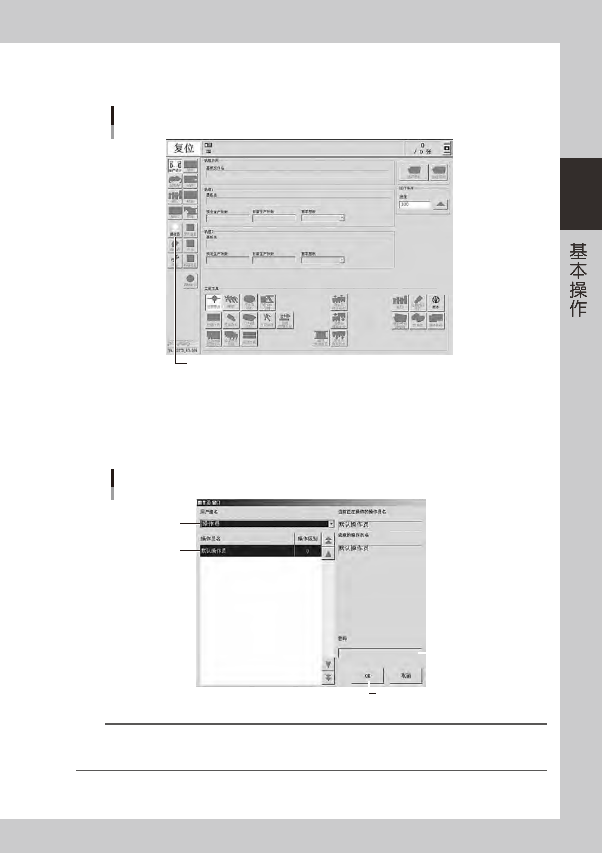 即只允许操作基本内容。操作级别可根据需要修改。此外,通过设置密码与操作级别,还可以添加操作员或指定可操作的项目。