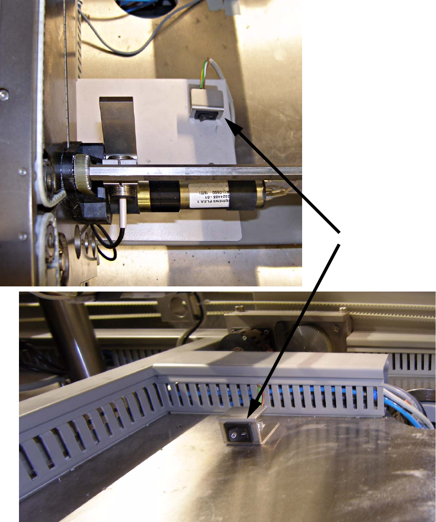 : Montieren Sie den Schalter mit einer Schraube (M4x16) im Bereich des Zwischenbandes, z.B.