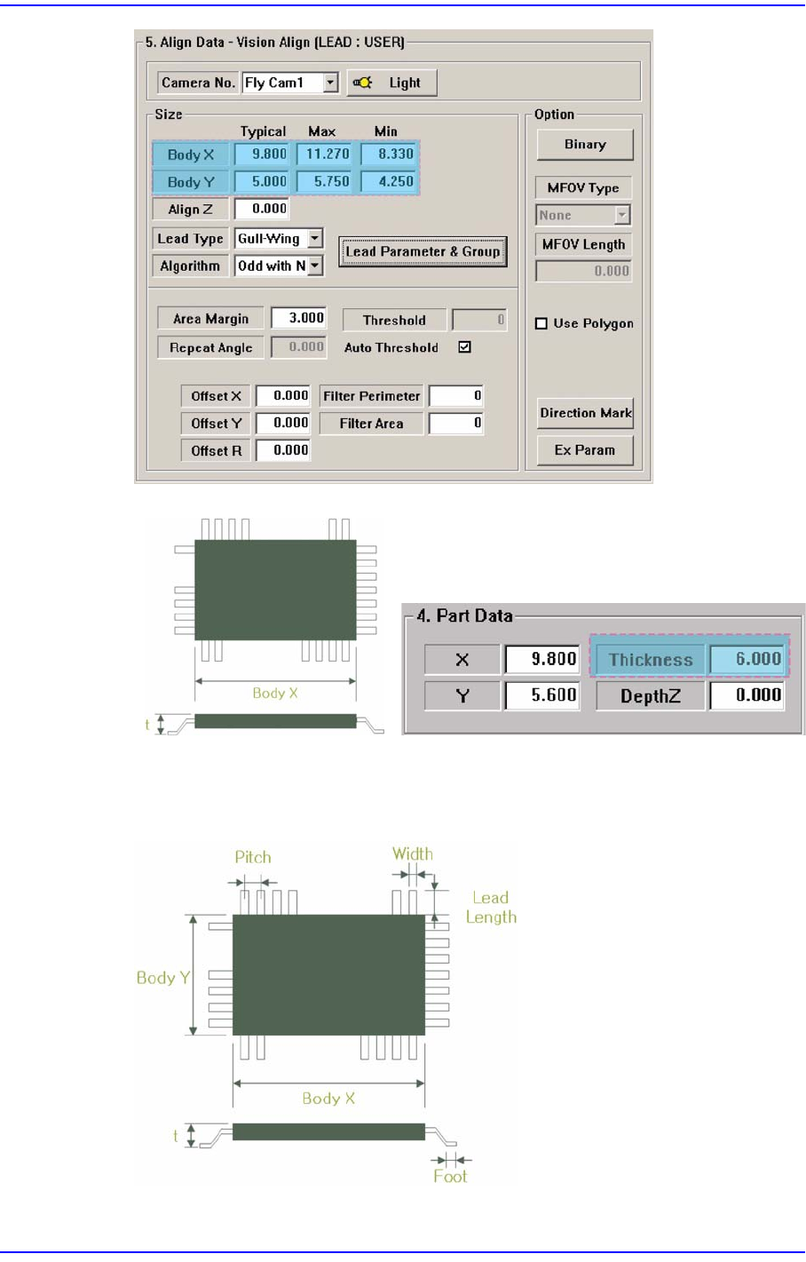 3-47 MMI 따라하기 Ⅱ 부품의 t 값을 정확하게 측정하여 Depth Z (Z 깊이 ) 에 입력 <Lead Parameter & Group> 버튼 클릭하여 리드파 라메터와 리드그룹 설정 리드의 두께를 측 정하여 <W idth> 열의 Ty p 항목에 입력