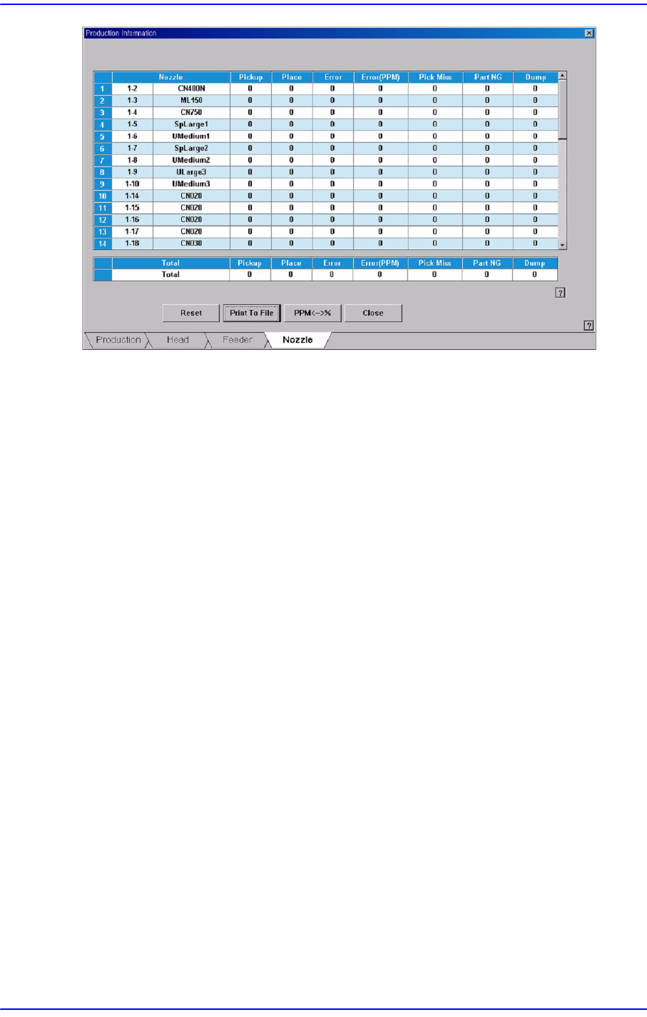 노즐에 의해 부품이 장착되지 못한 에러를 PPM단위로 표시합니다.