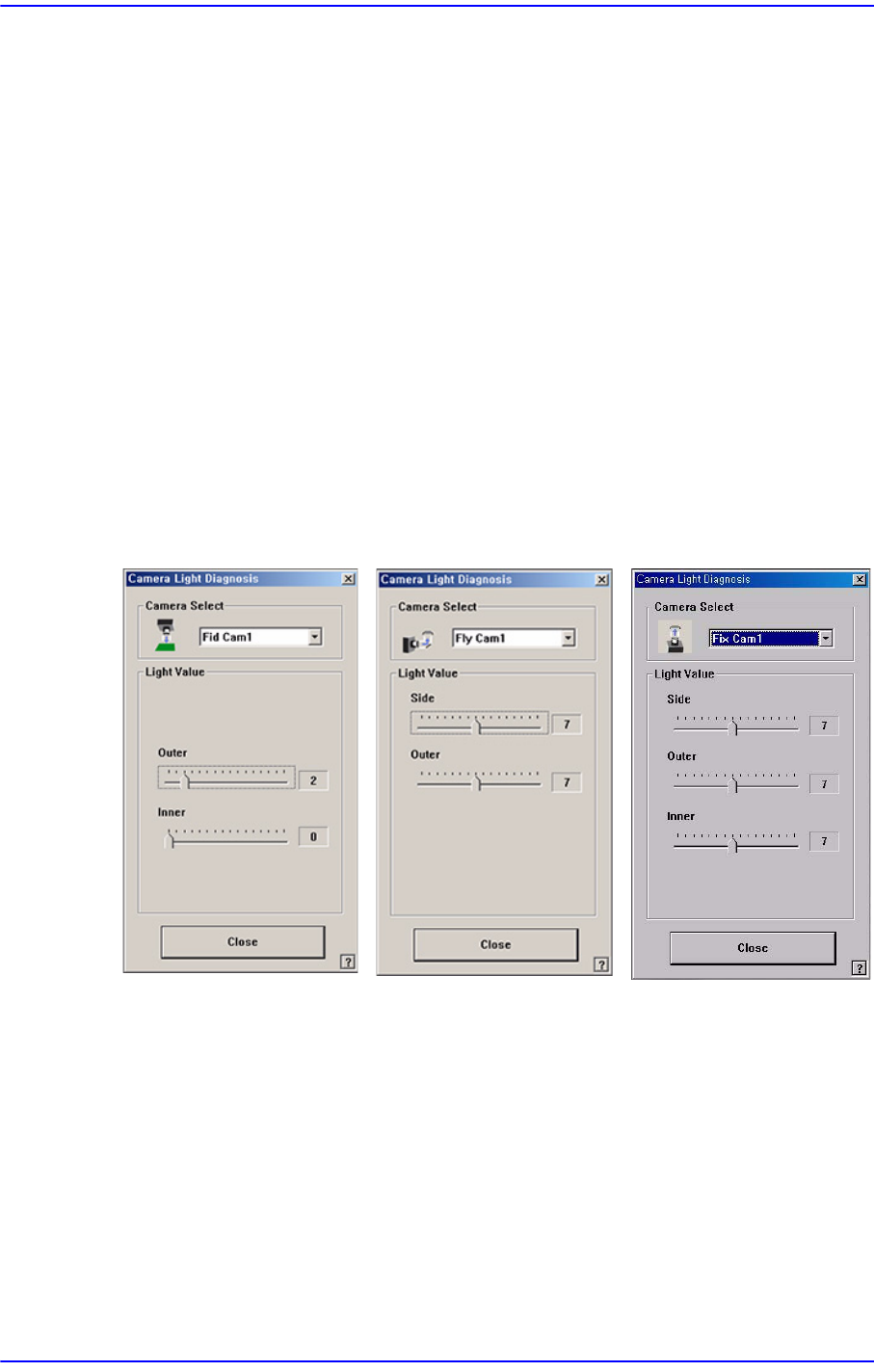 Outer 와 Coxial조명을 사용하며, 설정할 수 있는 조명값의 범위는 0 –15입니다.