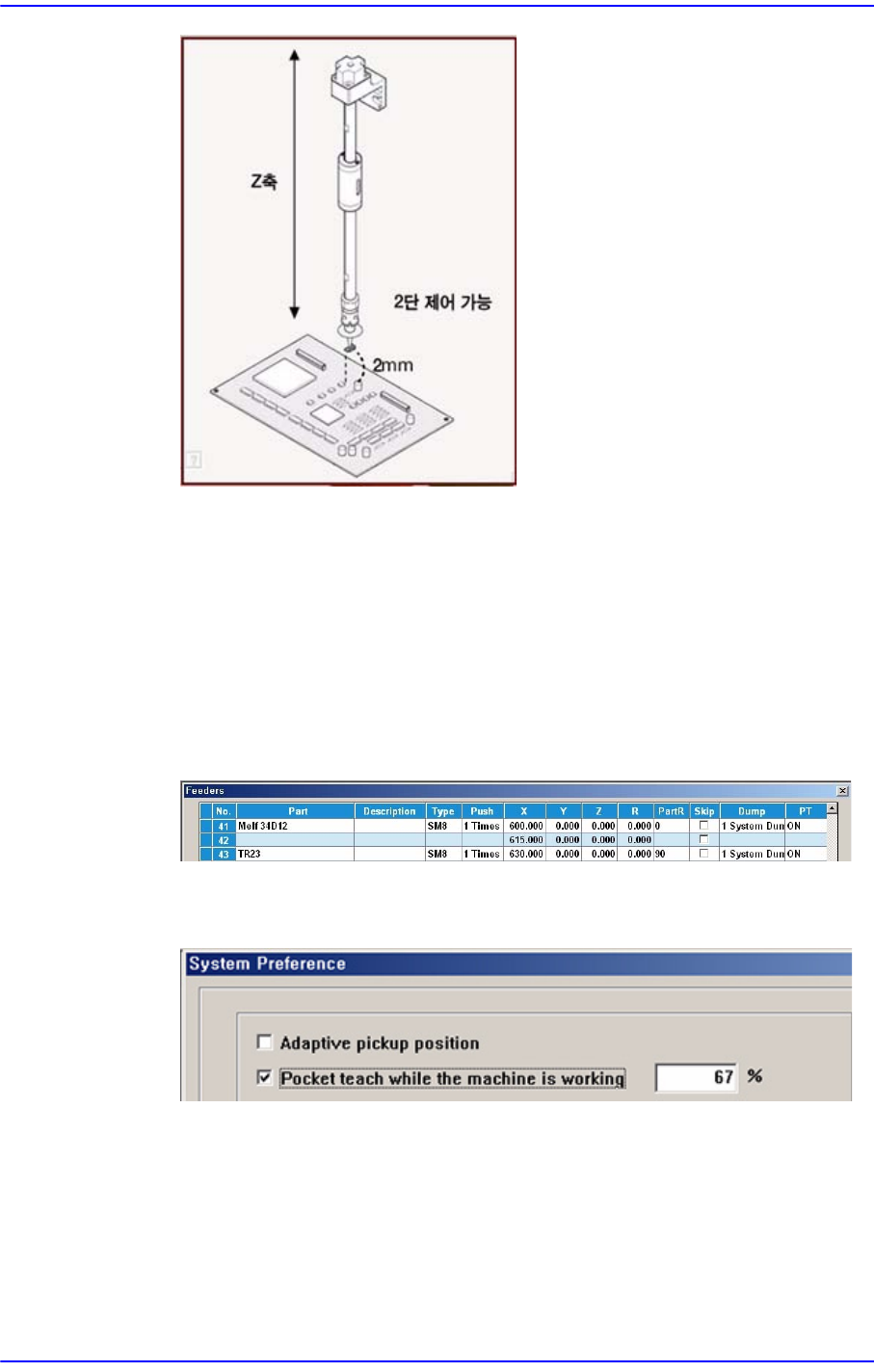 3-29 MMI 따라하기 Ⅱ . 이러한 단점을 극복하기 위해 위 두 동작의 속도를 지 정하는 기능을 추가하 게 된 것입니다 . Z 축 하강속도에 따른 흡착에러가 발생하기 쉬운 미소부품의 경우 , 여기서 값을 변경하여 인식테스트 를 실시 하고 인식 이 성공했 을 때의 값을 설정하여 부품을 등록하십시오 . <Insp Only Zero( 제로만 검사 )> 체크박스 특정 부품의 경우 …