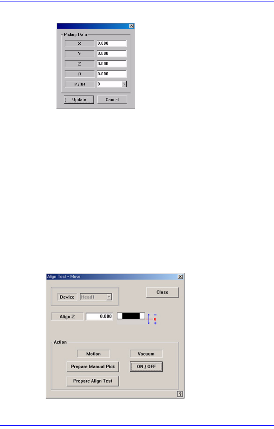 부품을 수동으로 흡착(Pickup)하여 부품 인식 테스트를 하기 위해서 사용됩니다