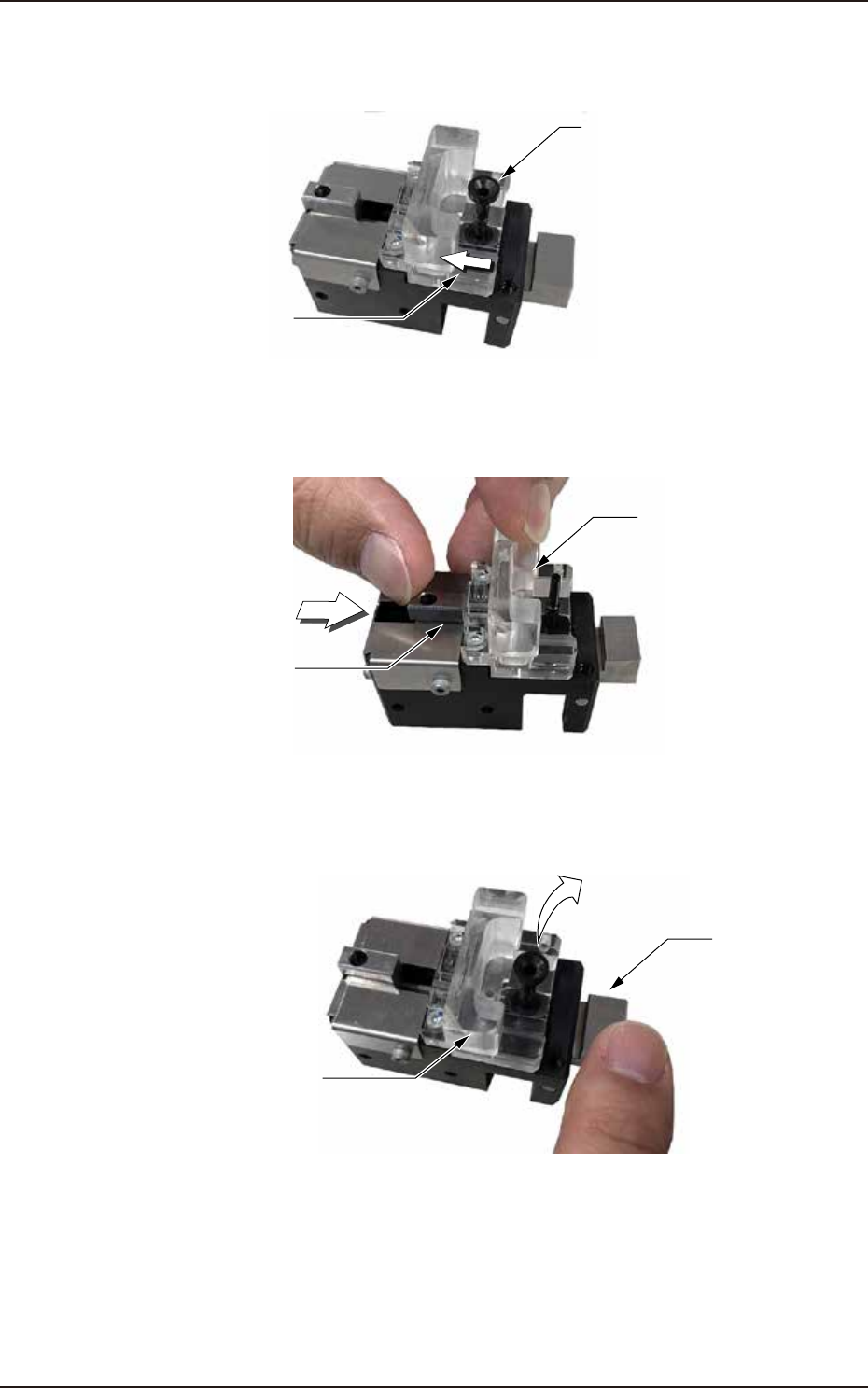 (4) 边按住透明塑料件边滑动滑动部,使过滤器插入吸嘴内。