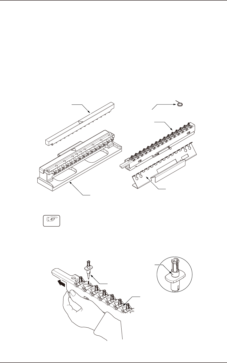 4OM-1752 1-65 1305-001 5.7 吸嘴过滤器的插入方法 • 使用过滤器一次性更换治具 (15 连、高速吸嘴用 ) 时 更换之前,请准备下列工具等。 •  G5S/G5S2 用高速吸嘴贮备器更换部 (KYB-M3806-000) •  G5S/G5S2 用高速吸嘴 •  过滤器一次性更换治具 (KYX-M3807-000) •  过滤器拆卸辅助治具 (KYX-M3852-000) •  过滤器拆卸针 (KYB…